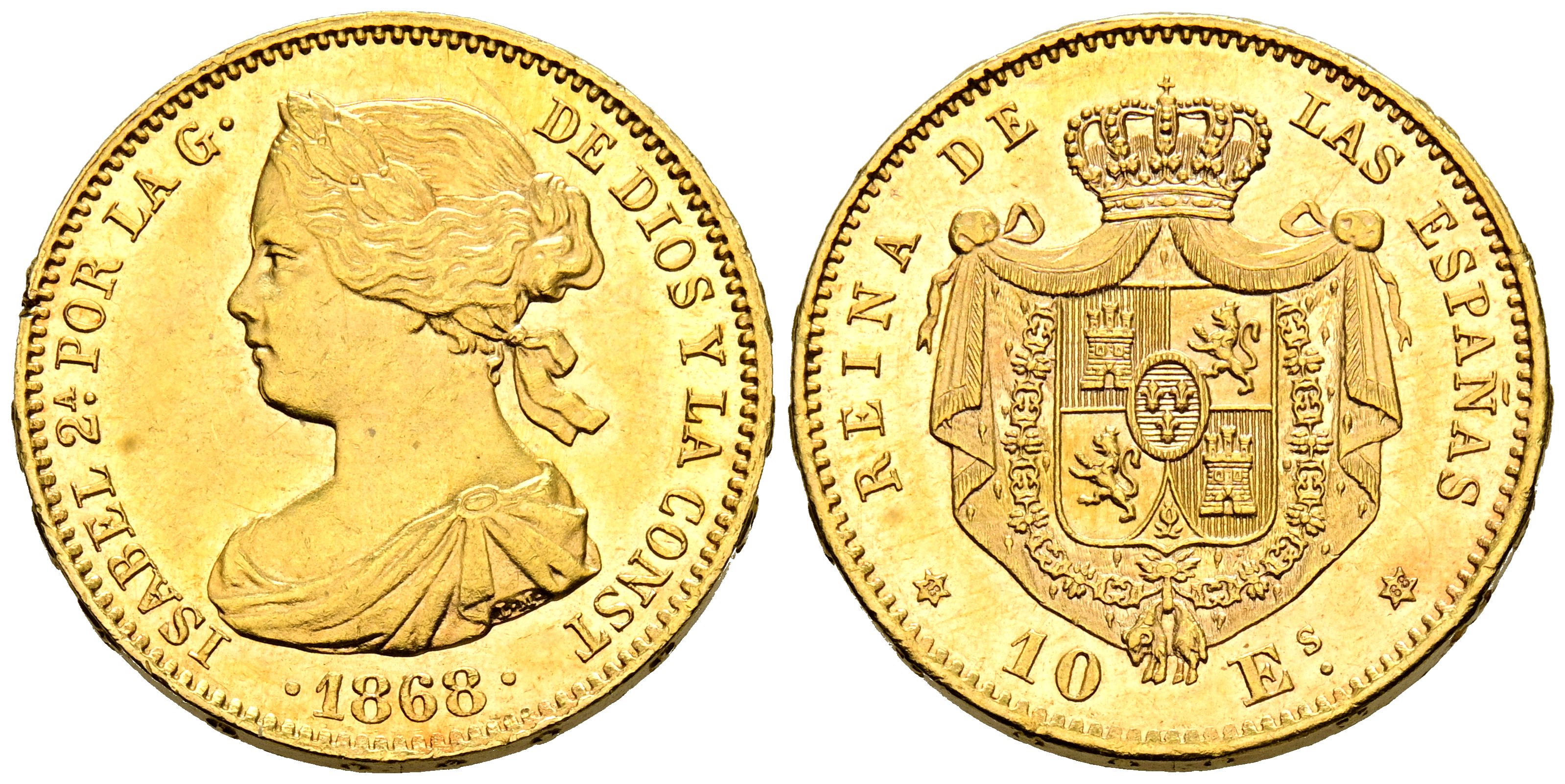 ISABEL II (1833-1868). 10 Escudos. (Au. 8,43g/22mm). 1868 *18-68. Madrid. (Cal-2019-815). EBC.
