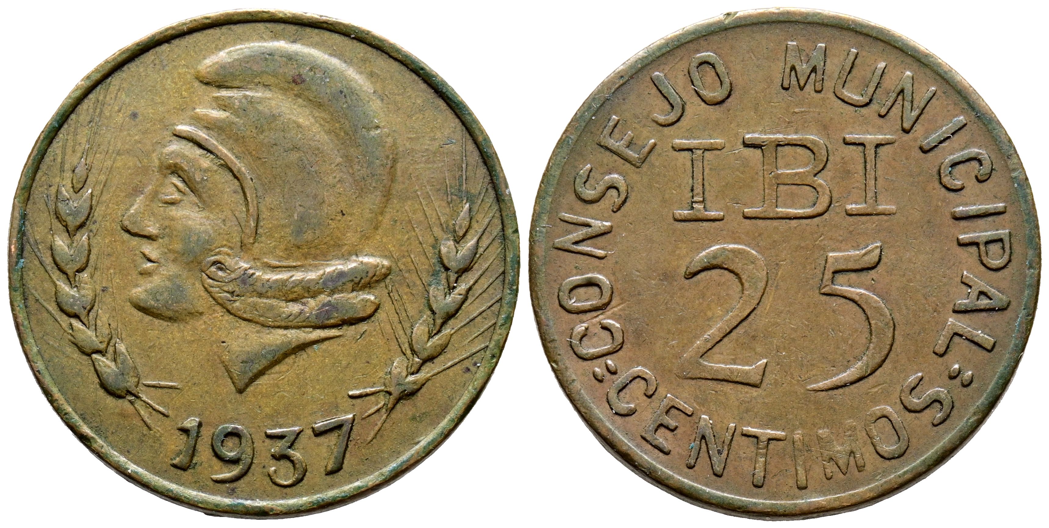 IBI. 25 Céntimos (Ae. 4,05g/24mm). 1937. (Cal-2019-17). Ángulo del 2 sobre la C. MBC.