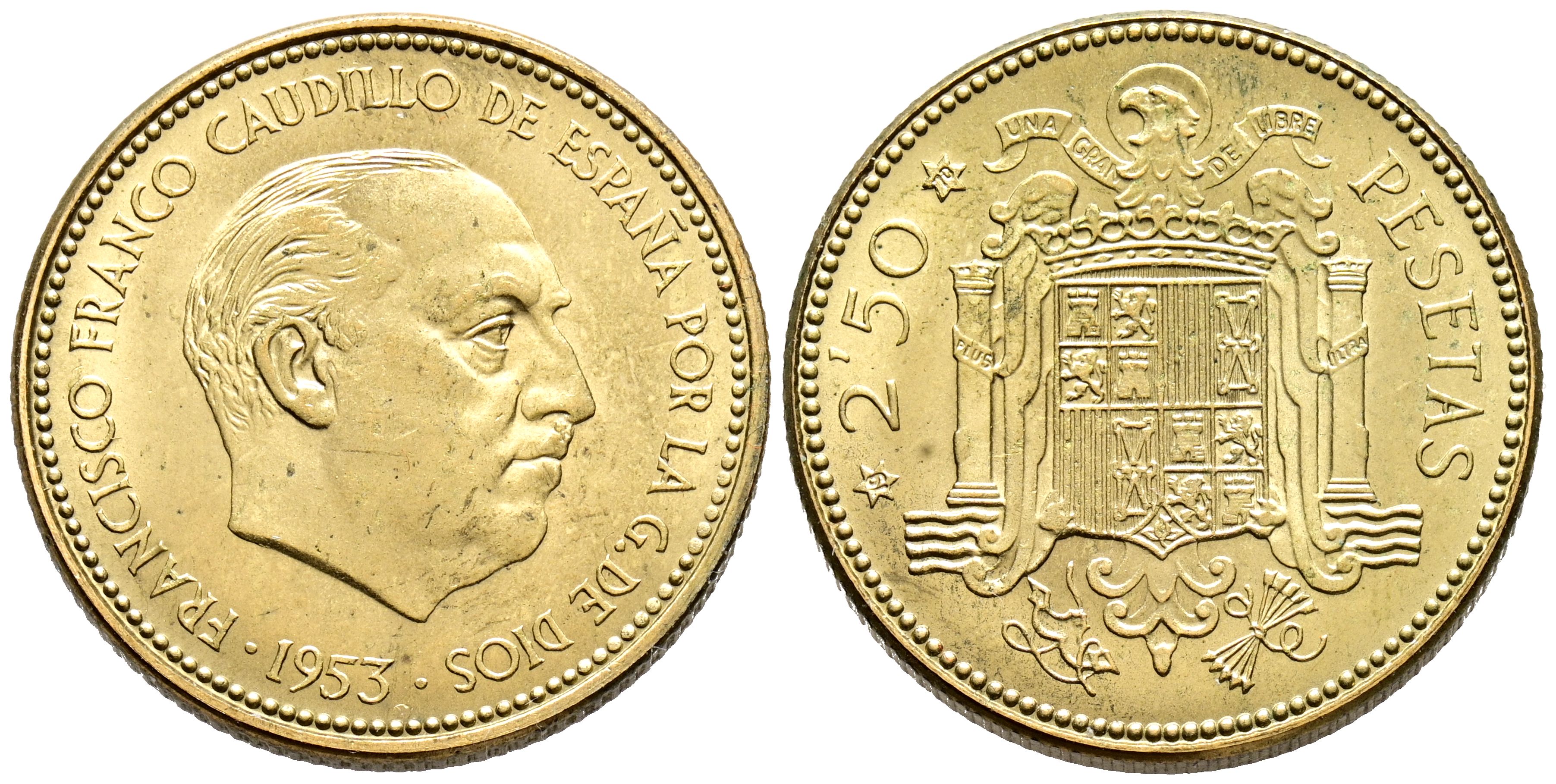 ESTADO ESPAÑOL (1936-1975). 2,50 Pesetas. (AlAe. 7,21g/25mm). 1953 *19-70. Madrid. (Cal-2019-89). EBC+. Bonito tono. Escasa.