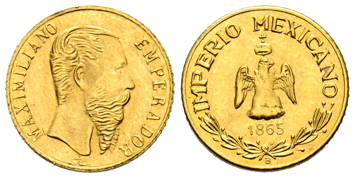 MÉXICO. Token. (Au. 0,52g/10mm). 1865. Emperador Maximiliano. Pieza de fantasía acuñado en el siglo XX. EBC.
