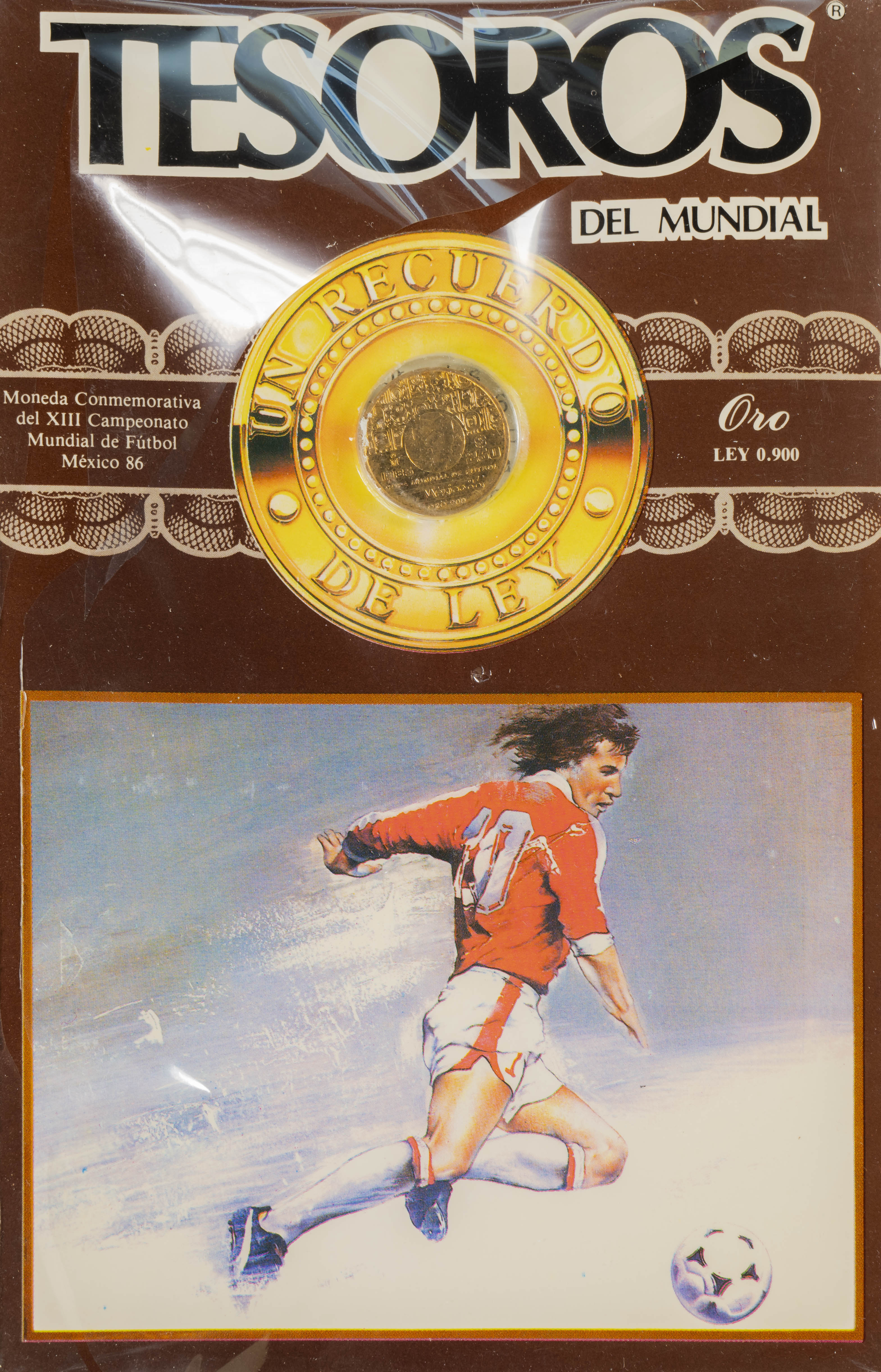 MÉXICO. 250 Pesos. (Au. 8,64g/23mm). 1985. Casa de la Moneda de México. Mundial de Fútbol México´86. (Km#500). En blíster original correspondiente a la serie Tesoros del Mundial. SC. Con plástico protector en perfectas condiciones.
