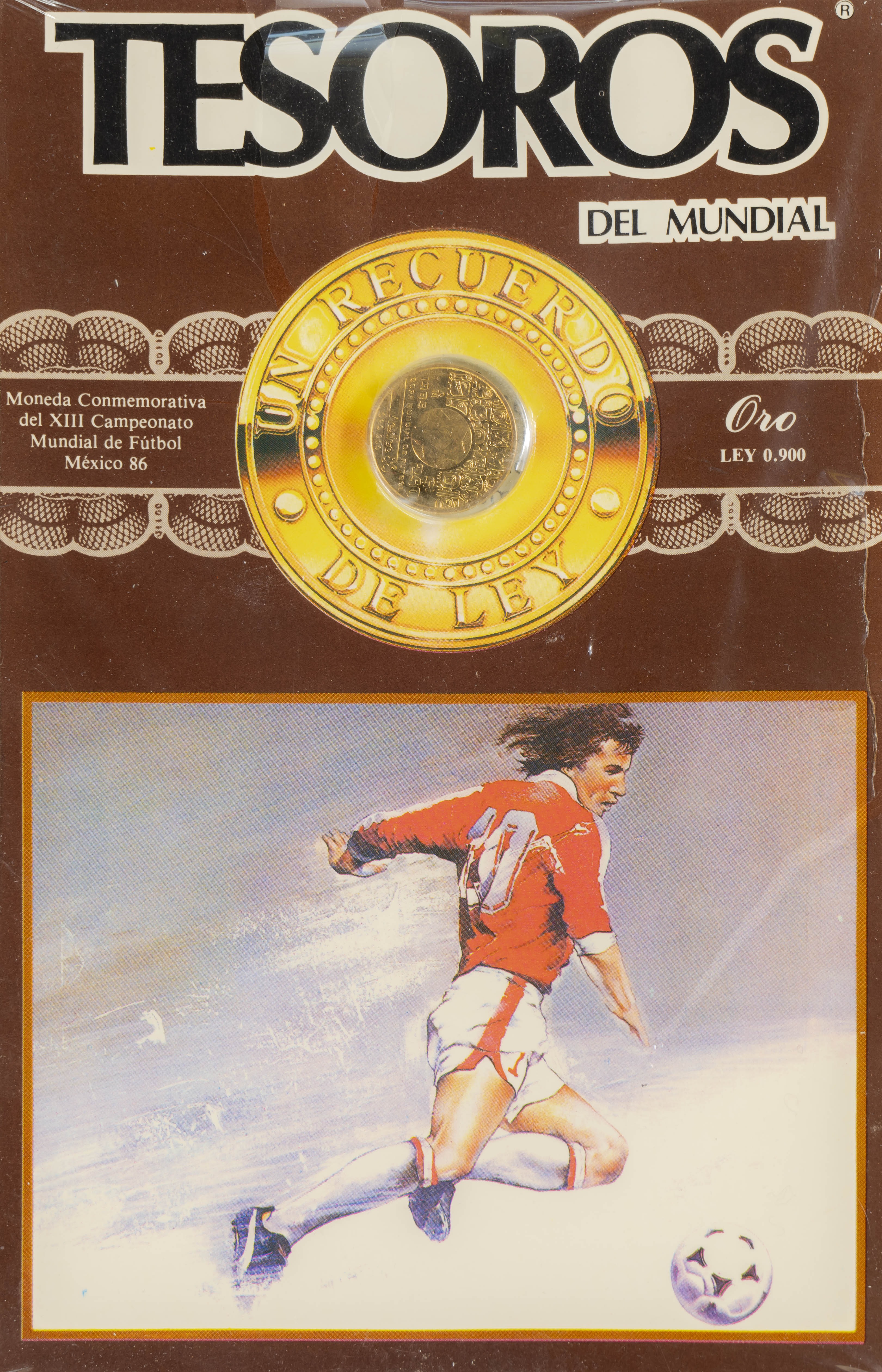 MÉXICO. 250 Pesos. (Au. 8,64g/23mm). 1985. Casa de la Moneda de México. Mundial de Fútbol México´86. (Km#500). En blíster original correspondiente a la serie Tesoros del Mundial. SC. Con plástico protector en perfectas condiciones.