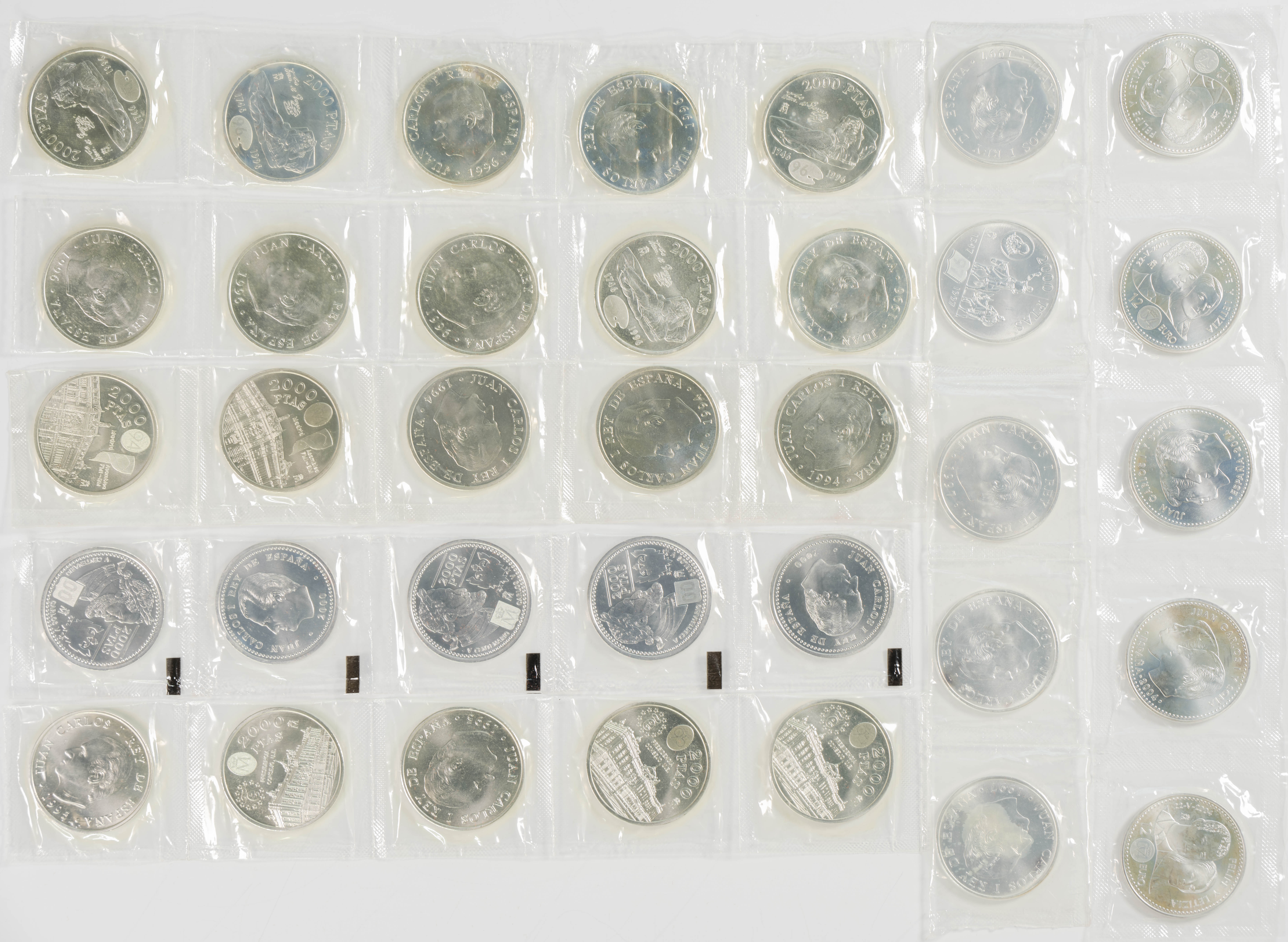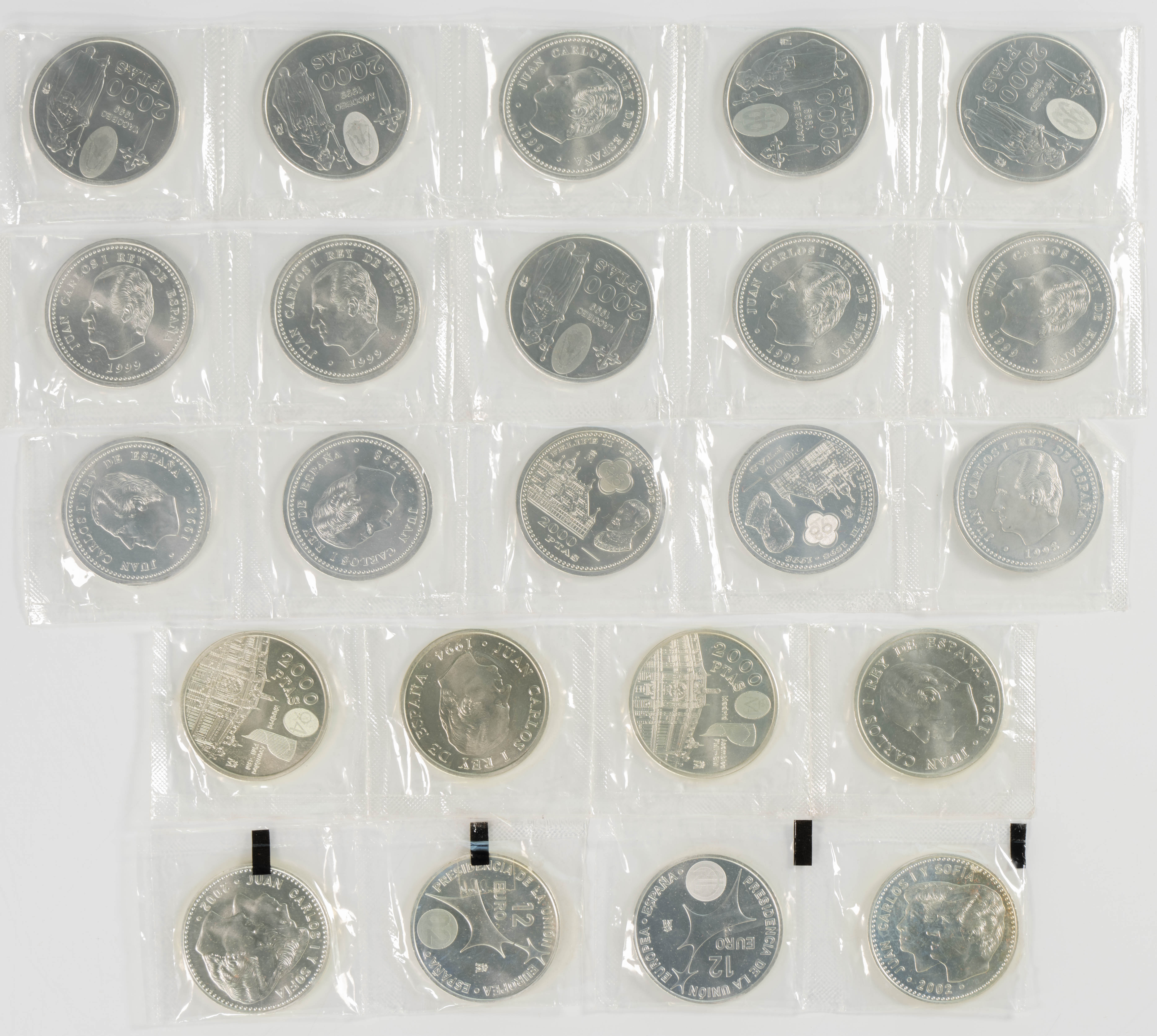 CONTEMPORÁNEO. Conjunto de 58 monedas de 2000 Pesetas (49) y 12€ (9) en tiras sin abrir y con diferente temática y años de acuñación. A EXAMINAR.