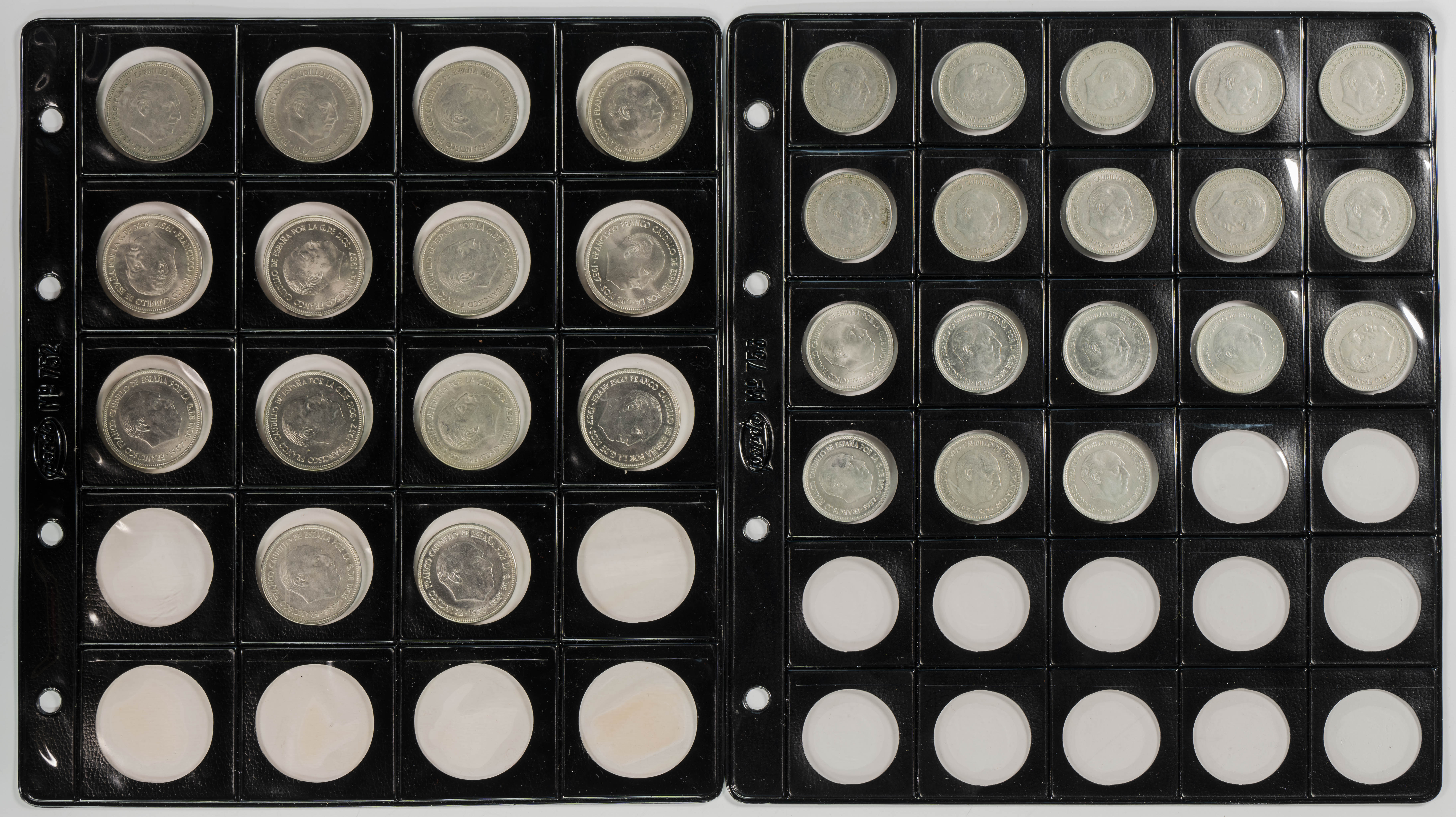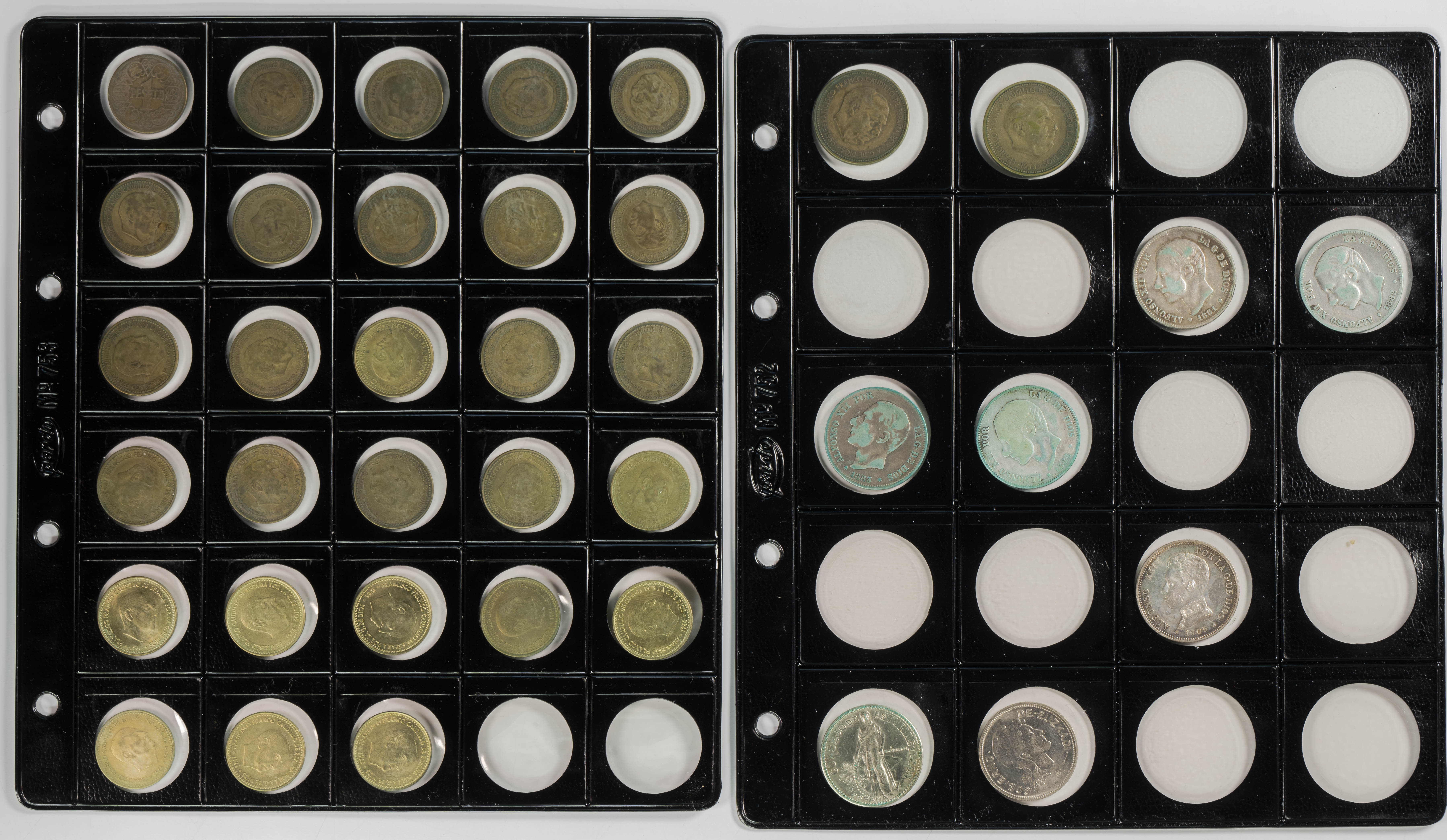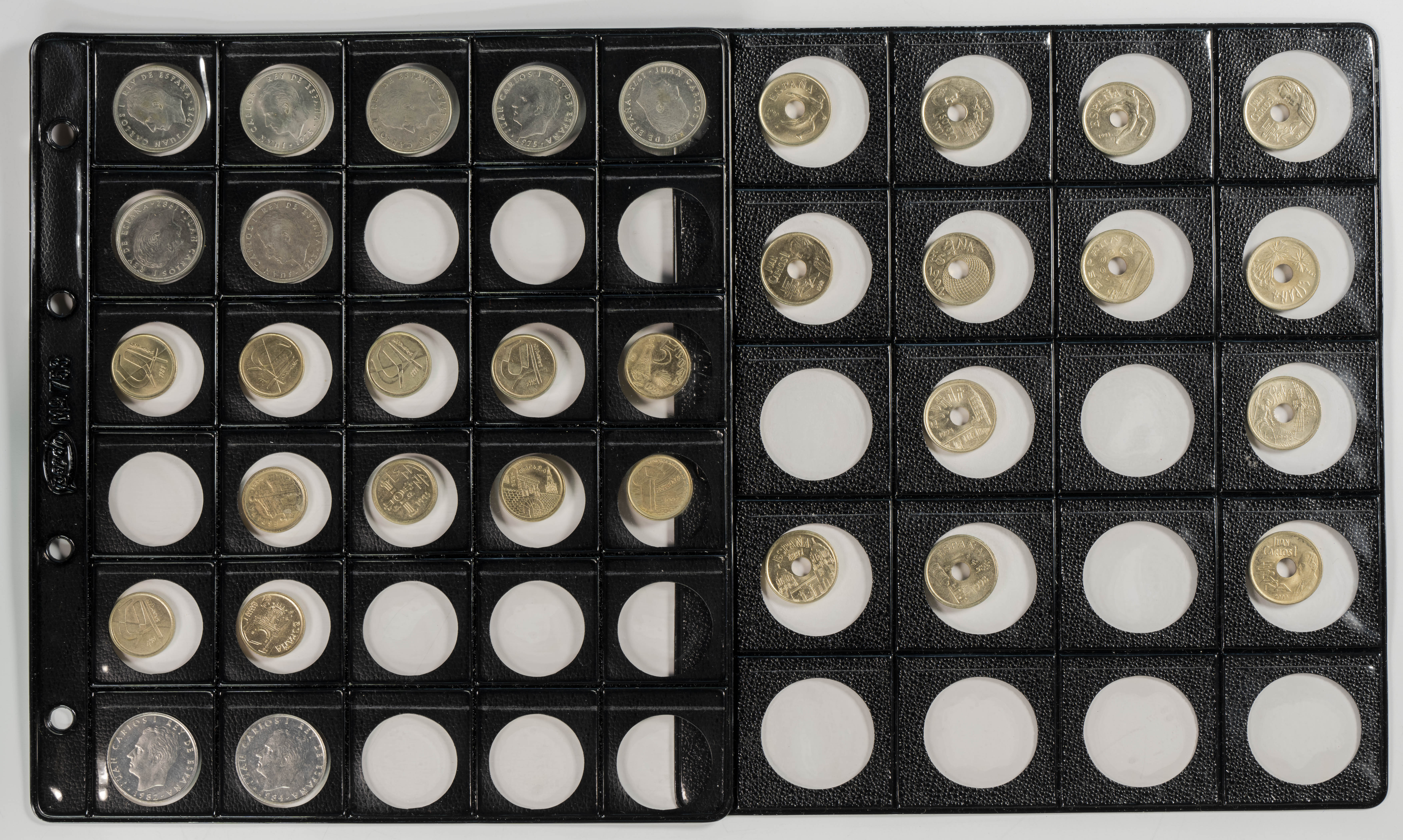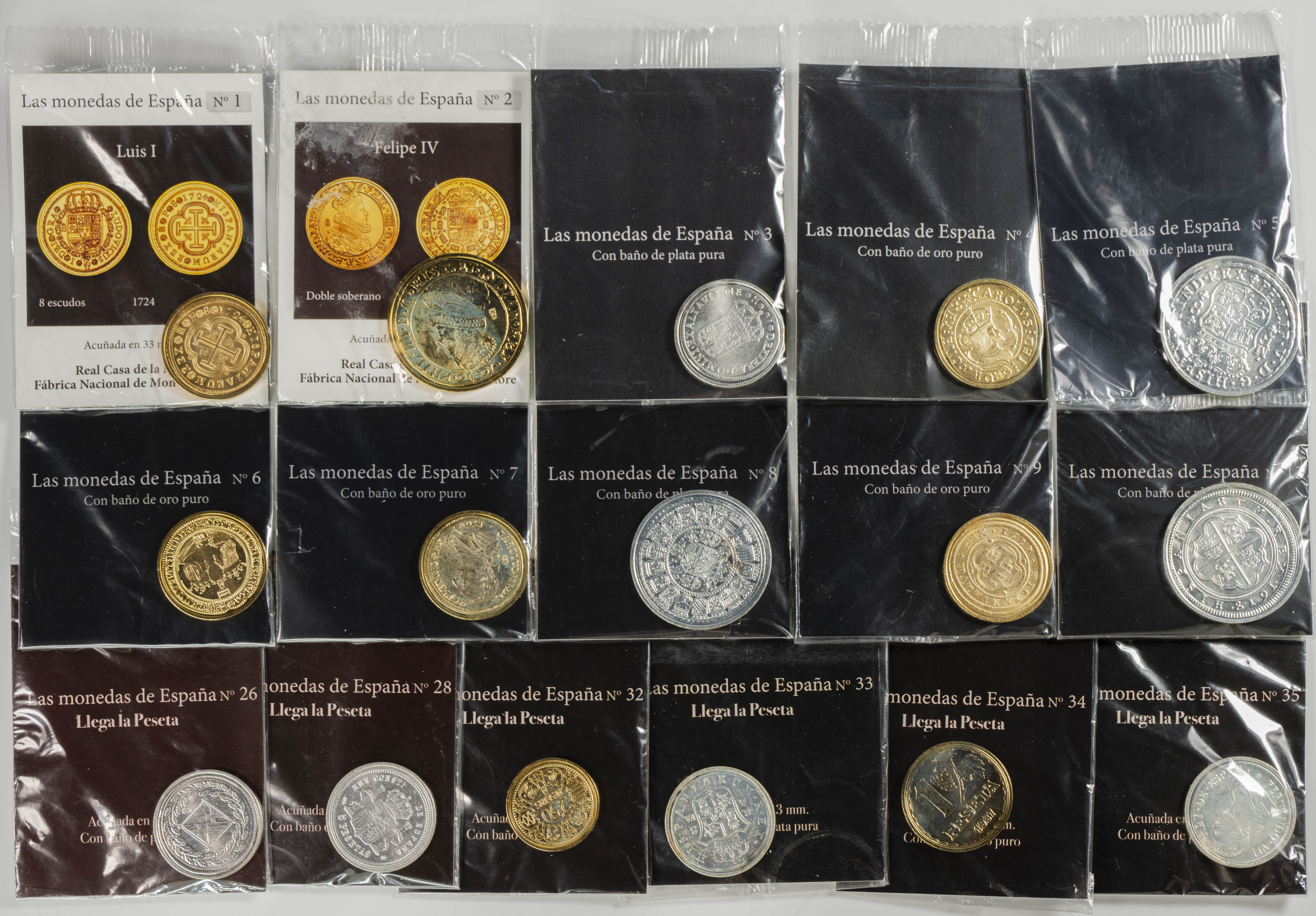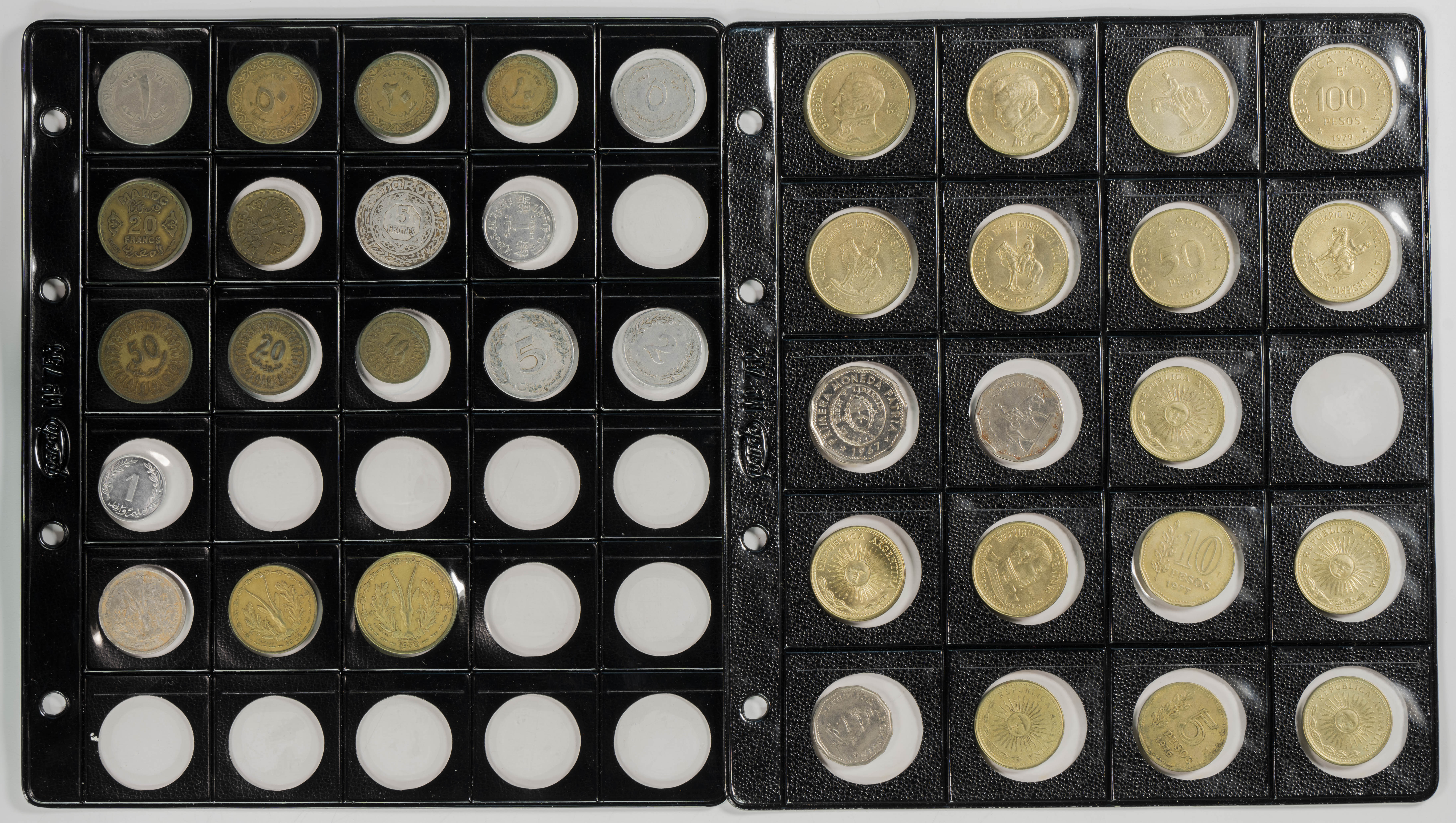 Amplio e interesante conjunto formado por centenares de piezas españolas y extranjeras, expuestas en álbumes, cajas y sets. Variedad de módulos, fechas (piezas especialmente del S. XX aunque encontraremos también una buena representación del Centenario de la Peseta) y materiales. El conjunto presenta diferentes estados de conservación y algunas, pocas, réplicas de algún coleccionable por lo que es IMPRESCINDIBLE EXAMINAR.