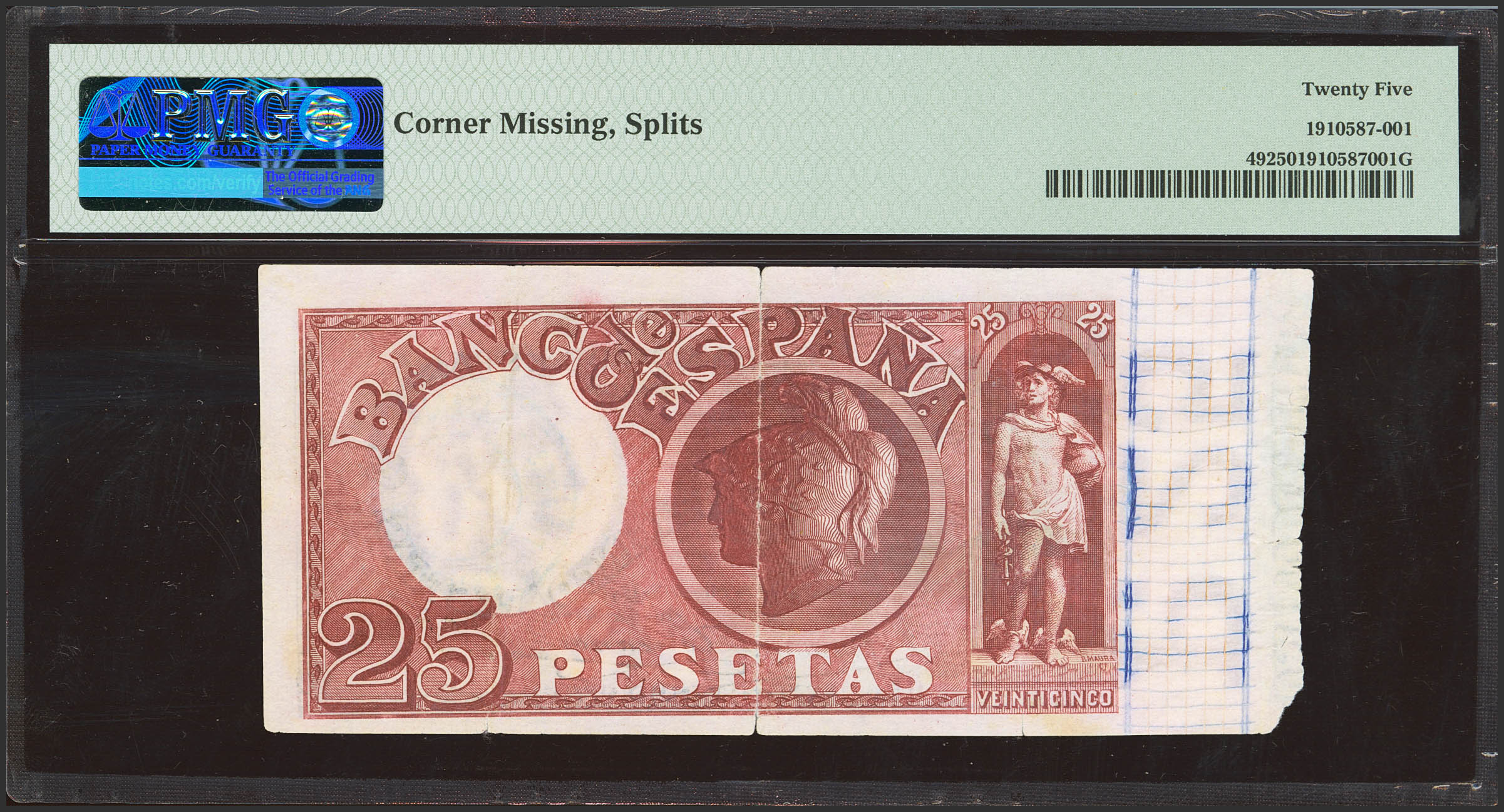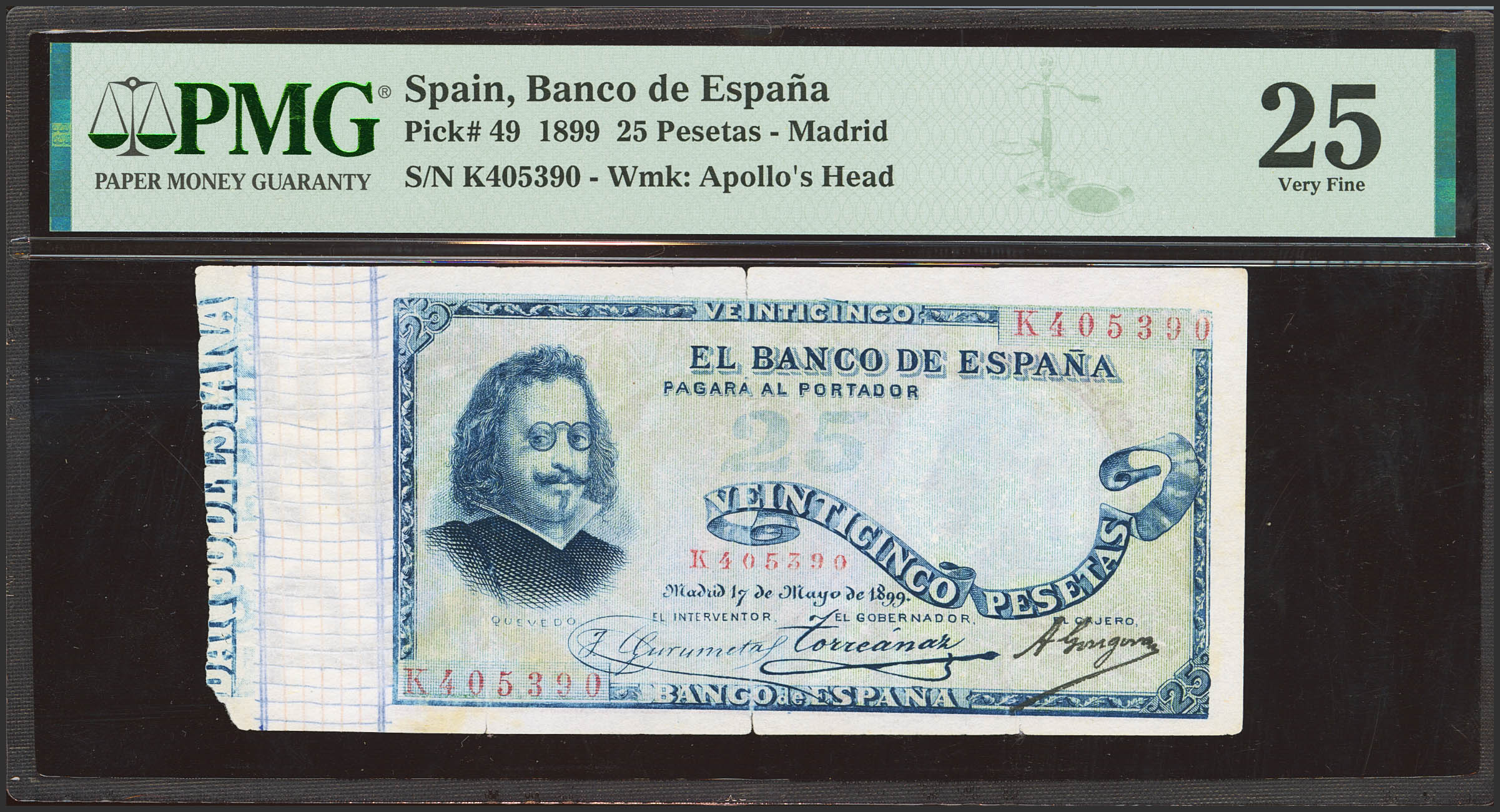 25 Pesetas. 17 de Mayo de 1899. Serie K. (Edifil 2021: 306a, Pick: 49). Raro. MBC+. Encapsulado PMG25 (corner missing splits).
