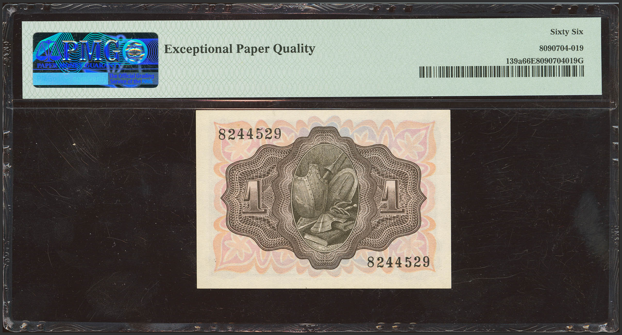 1 Pesetas. 19 de Noviembre de 1951. Sin serie. (Edifil 2023: 461, Pick: 139a). Inusual en esta calidad, apresto original. SC. Encapsulado PMG66EPQ.