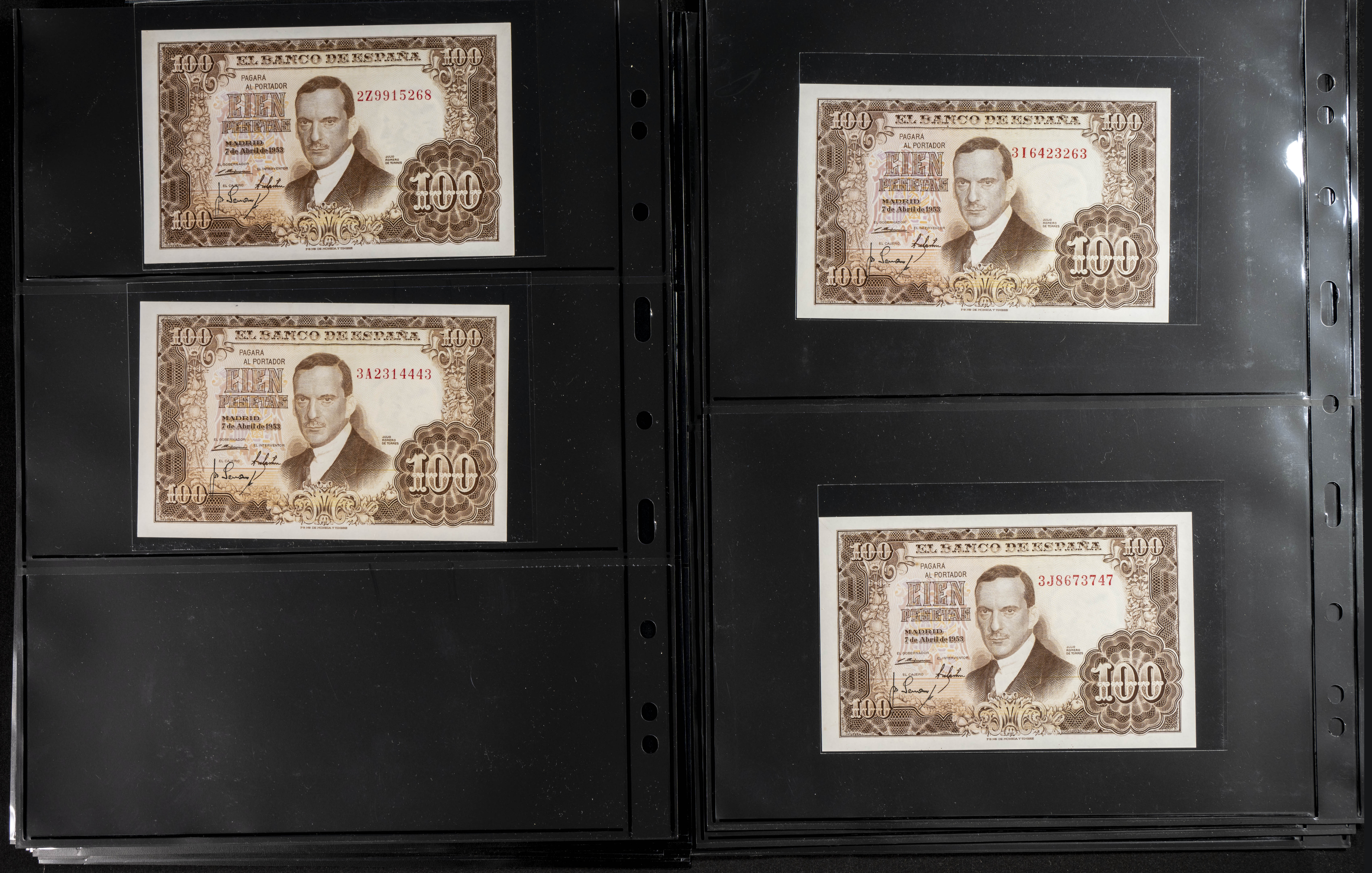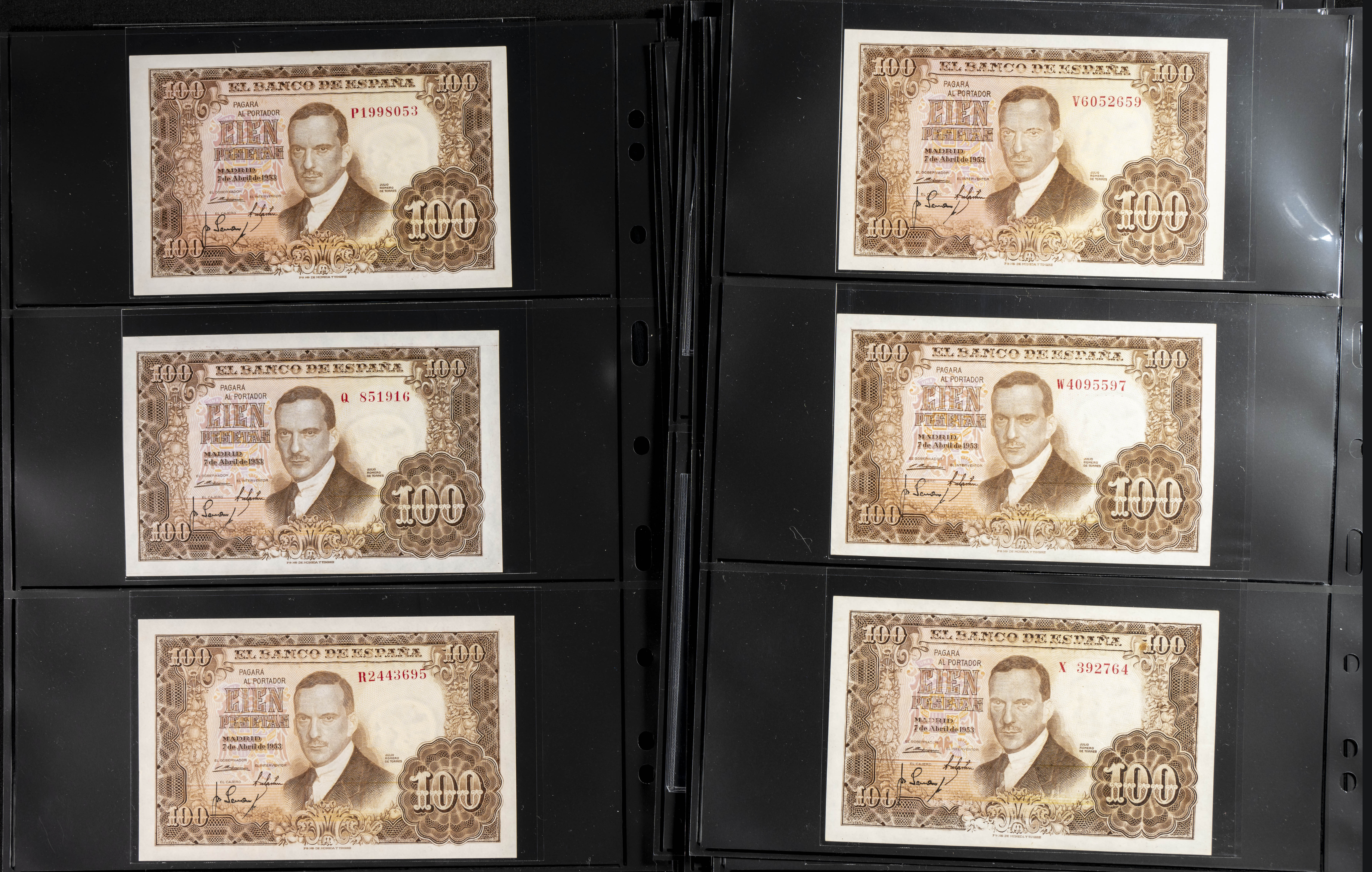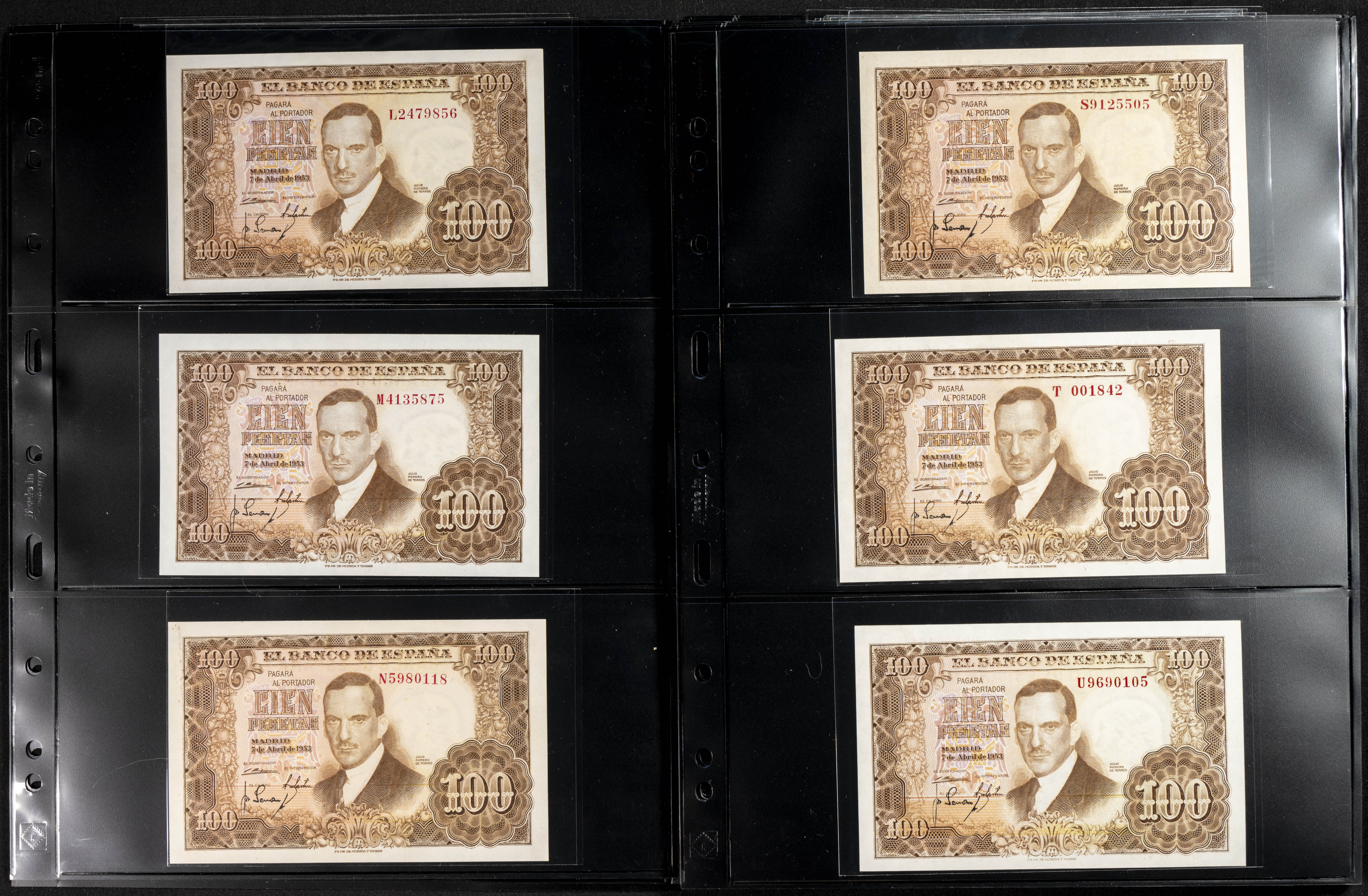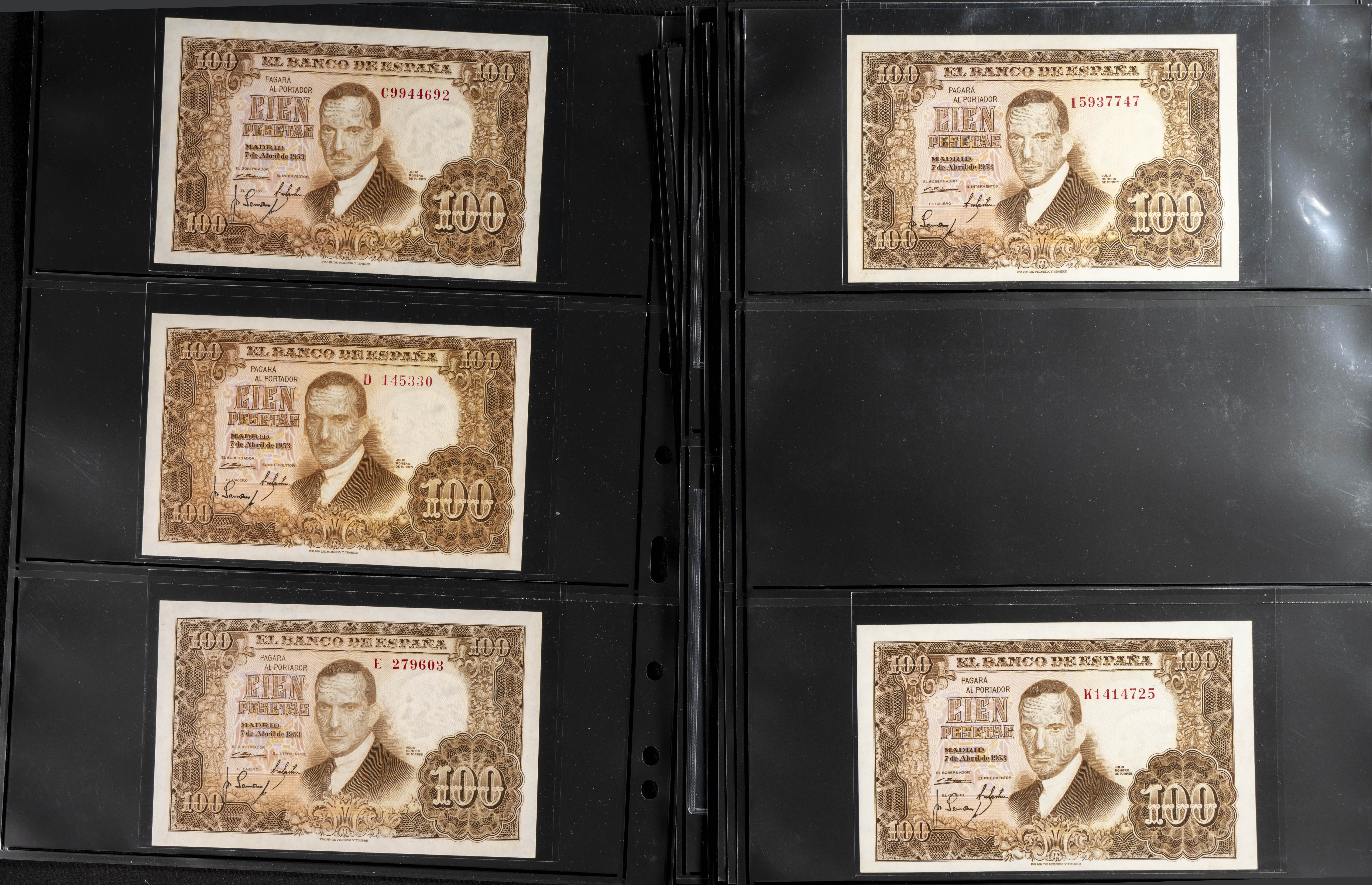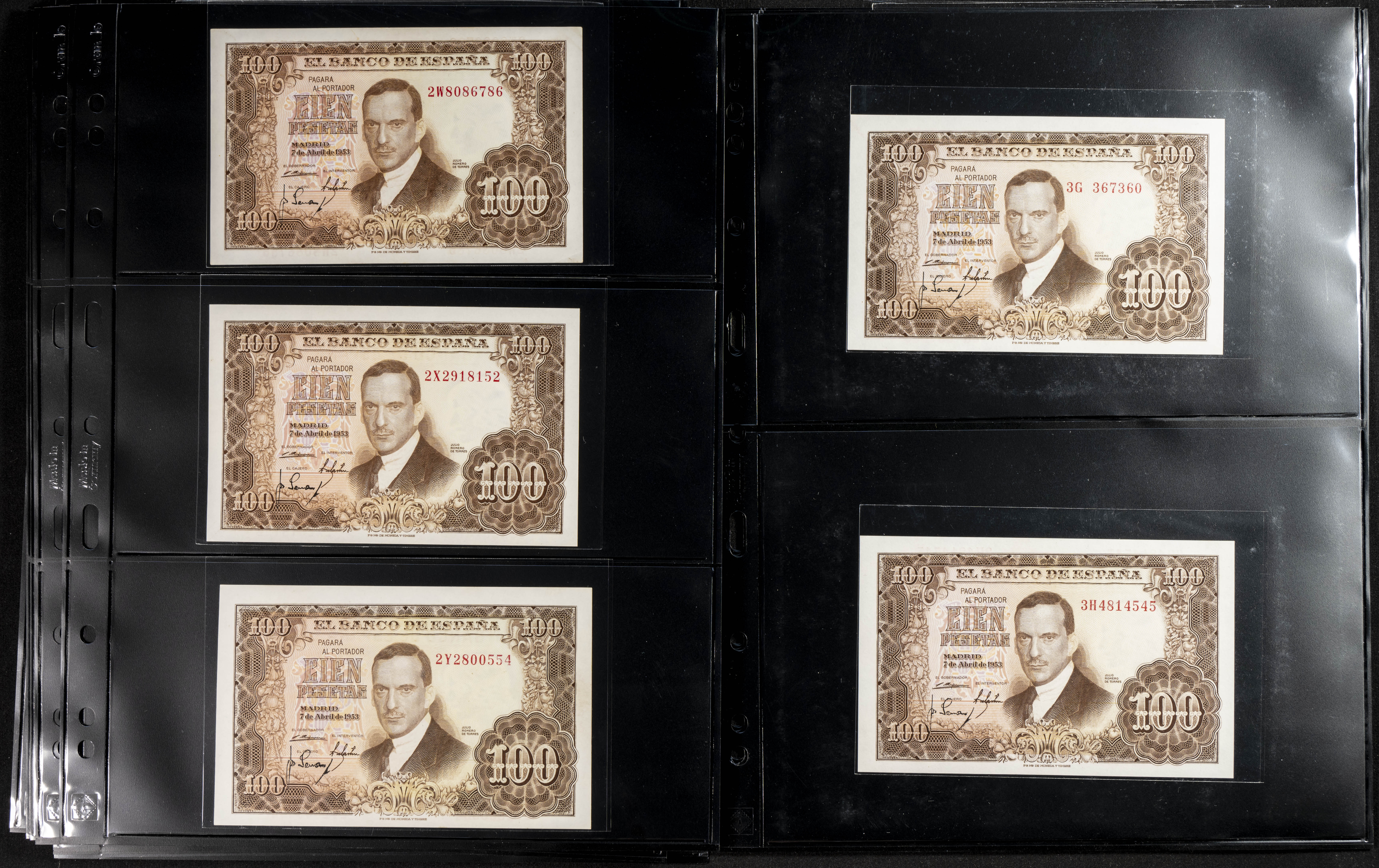 Conjunto de más de 75 billetes de 100 Pesetas emitidos el 7 de Abril de 1953, todos ellos con series diferentes. (Edifil 2023: 464, 464b, 464c). La gran mayoría en buena conservación, conservando en la mayoría de ellos el apresto original. A EXAMINAR.