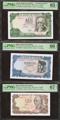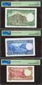Serie completa del 100 Pesetas, 500 Pesetas y 1000 Pesetas emitidos el 17 de Noviembre de 1970 y 17 de Julio de 1971, todos sin serie y con la misma numeración baja 000243. (Edifil 2023: 472, 473, 474, Pick: 152a, 153a, 154). Rarísima serie completa en esta excepcional calidad, apresto original. SC. Encapsulados PMG67EPQ, 66EPQ, 65EPQ.