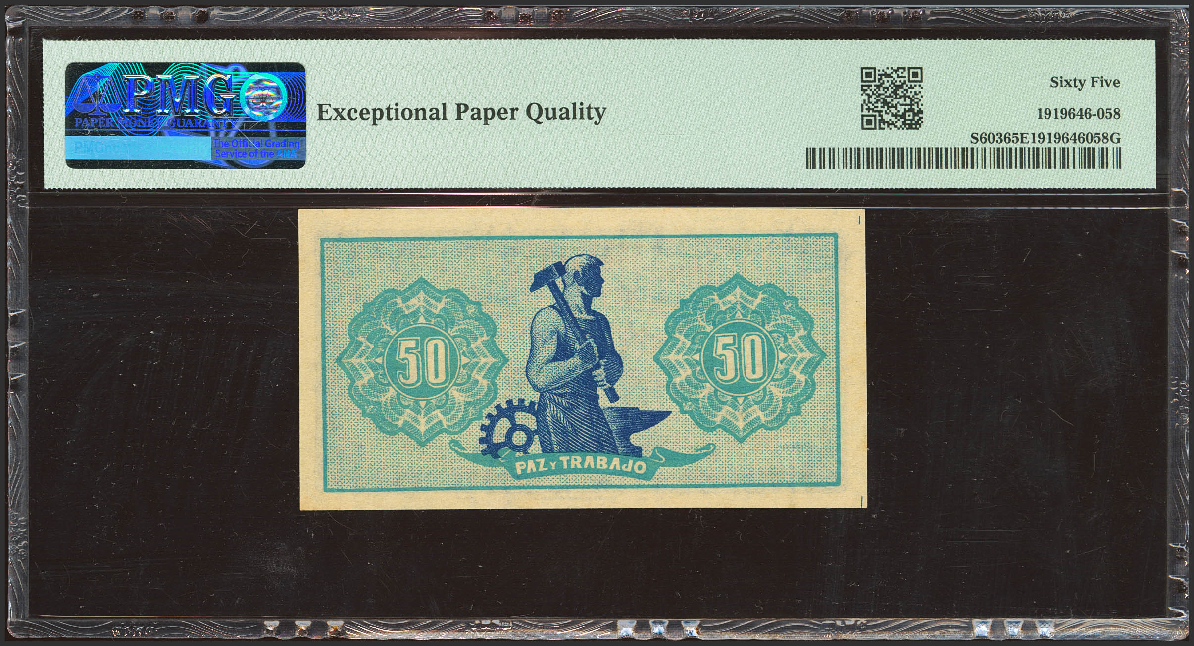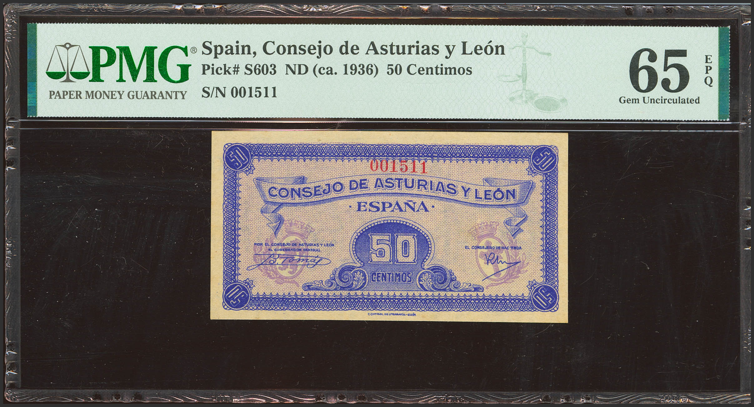 50 Céntimos. 1937. Asturias y León. Sin serie. (Edifil 2023: 396, Pick: S603). Rarísimo, especialmente en esta excepcional calidad, apresto original. SC. Encapsulado PMG65EPQ.
