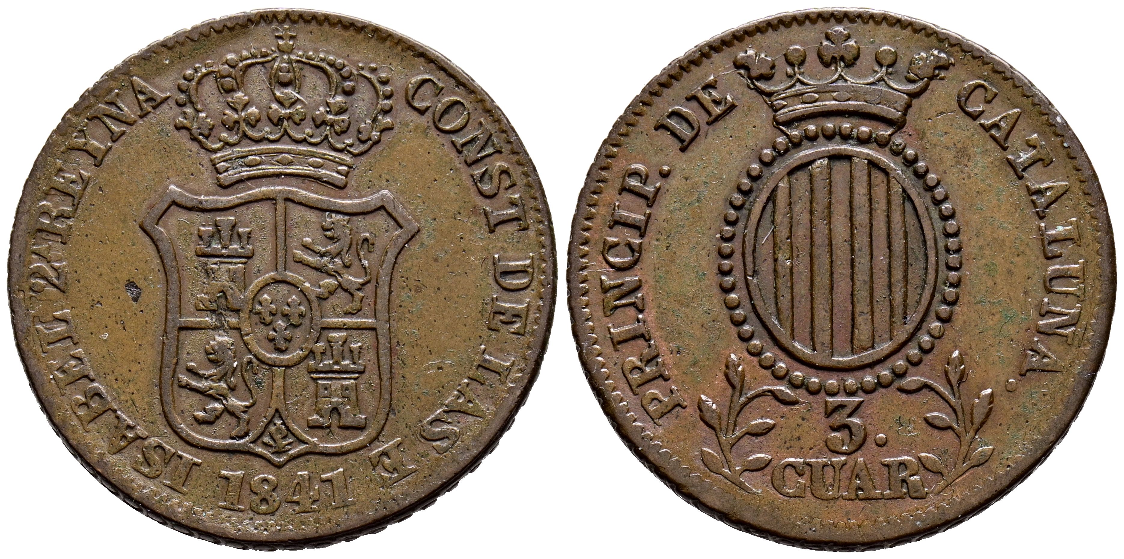 ISABEL II (1833-1868). 3 Cuartos. (Ae. 6,35g/26mm). 1841. Barcelona. (Cal-2019-9). MBC.