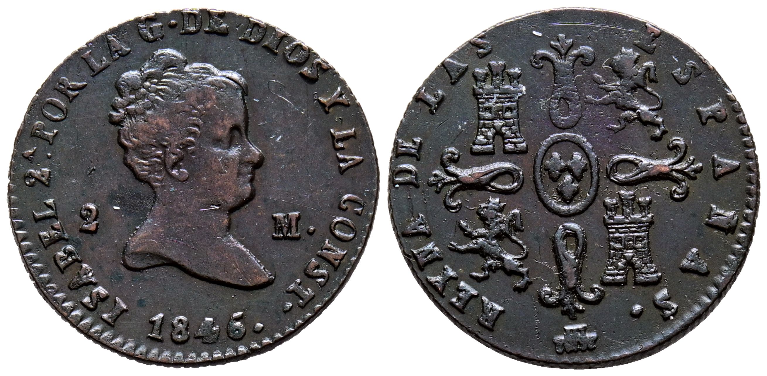 ISABEL II (1833-1868). 2 Maravedís. (Ae. 2,01g/19mm). 1846. Segovia. (Cal-2019-58). MBC.