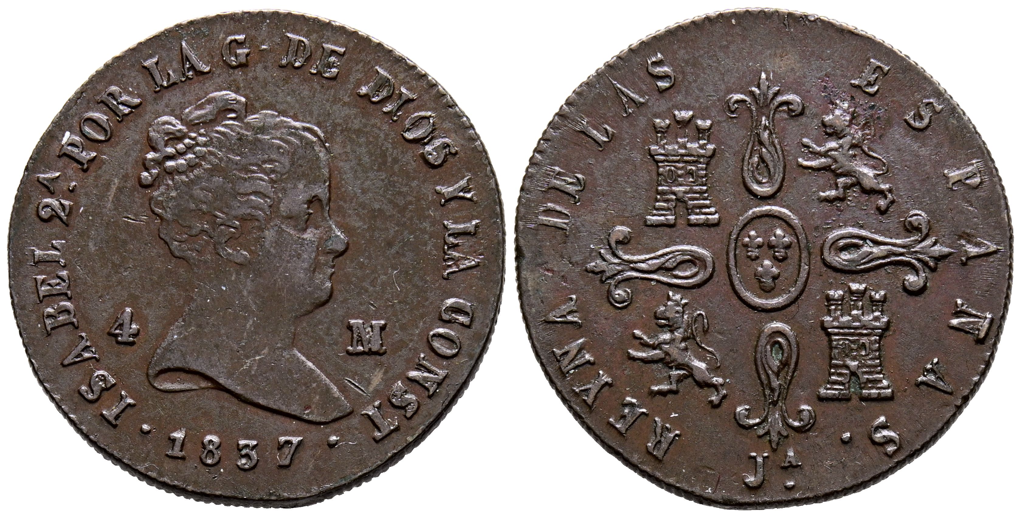 ISABEL II (1833-1868). 4 Maravedís. (Ae. 5,02g/24mm). 1837. Jubia. (Cal-2019-67). MBC+.