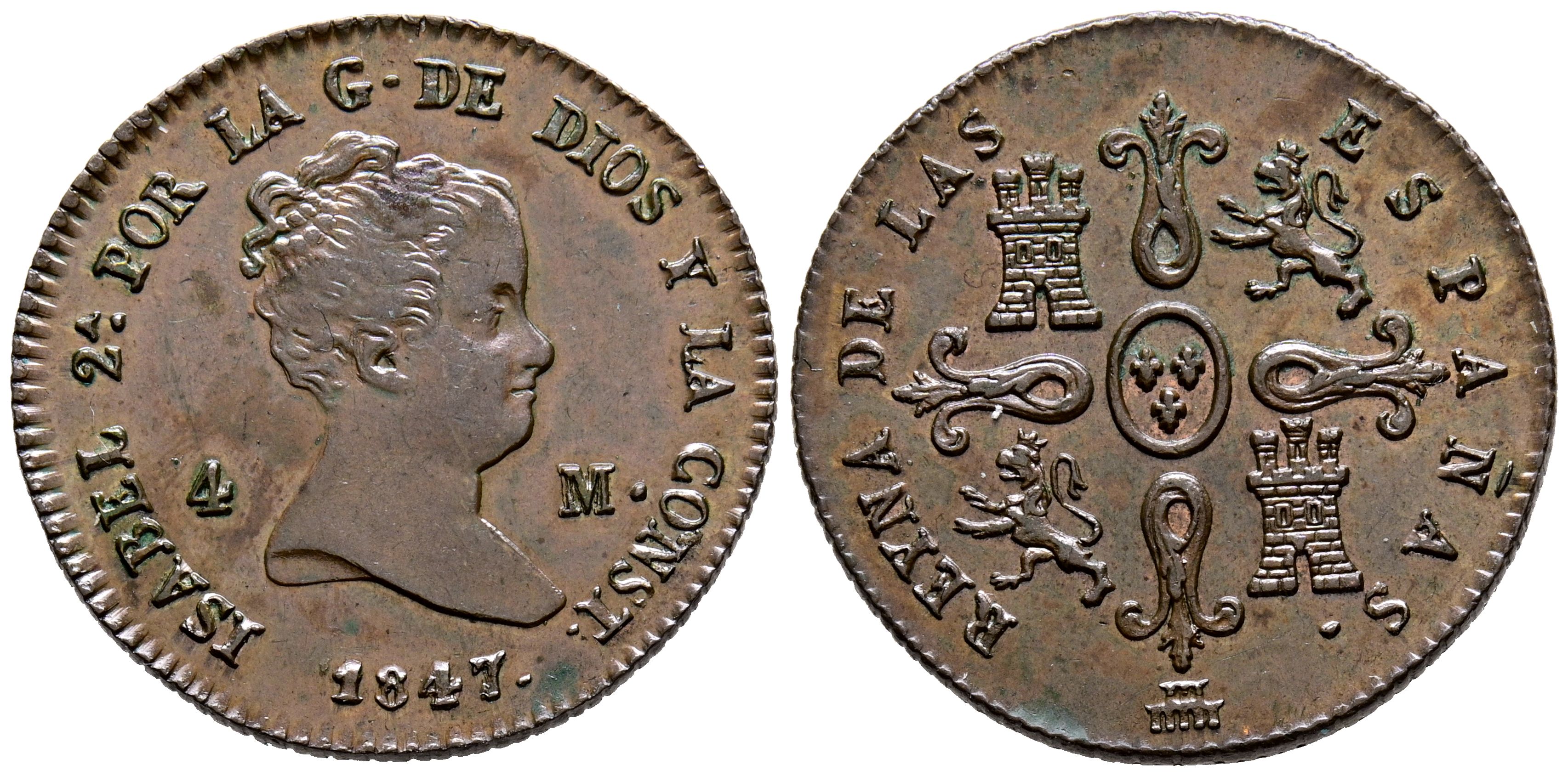 ISABEL II (1833-1868). 4 Maravedís. (Ae. 4,94g/24mm). 1847. Segovia. (Cal-2019-90). EBC. Muy atractivo ejemplar.