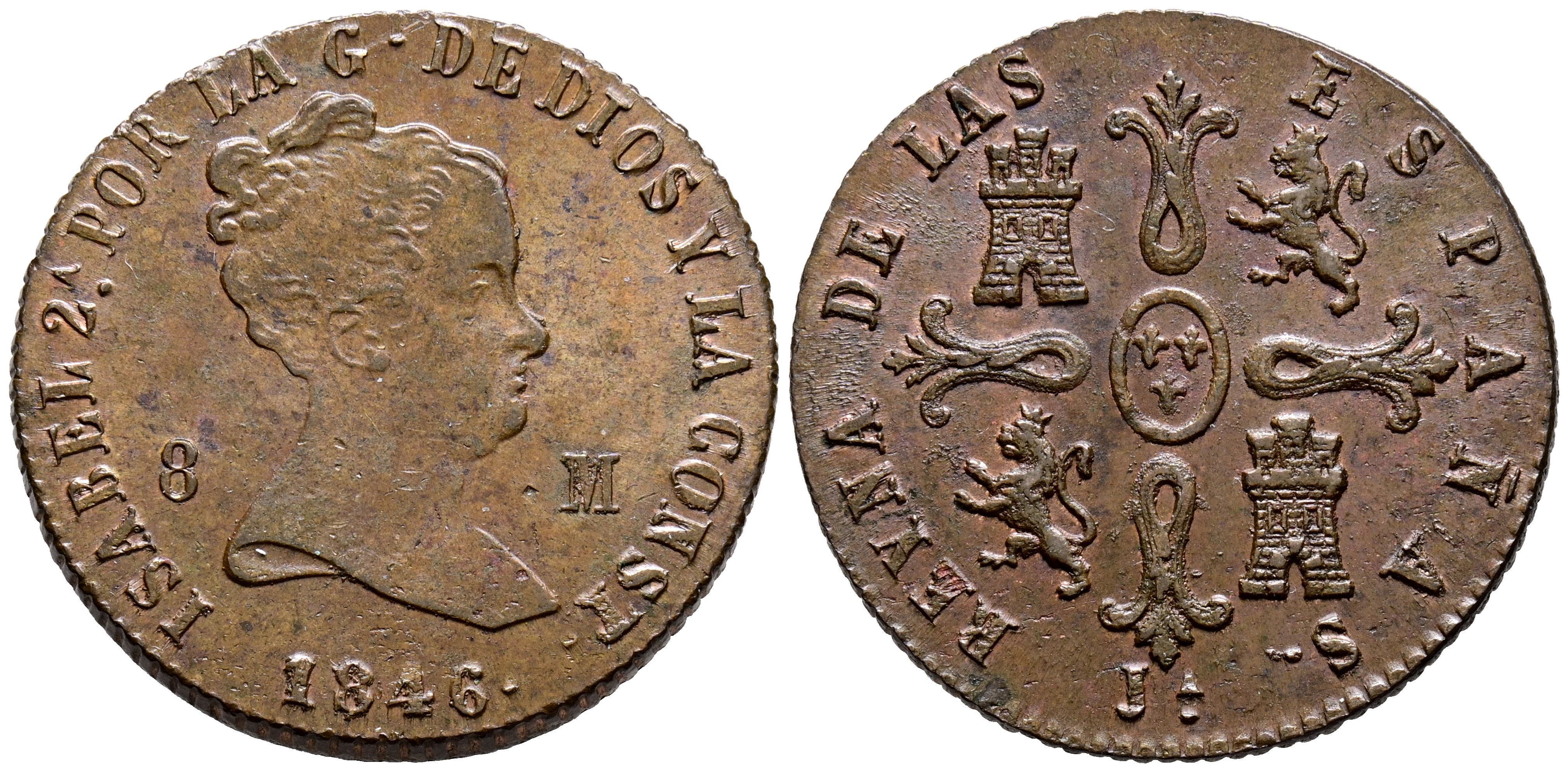 ISABEL II (1833-1868). 8 Maravedís. (Ae. 9,88g/29mm). 1846. Jubia. (Cal-2019-113). EBC.