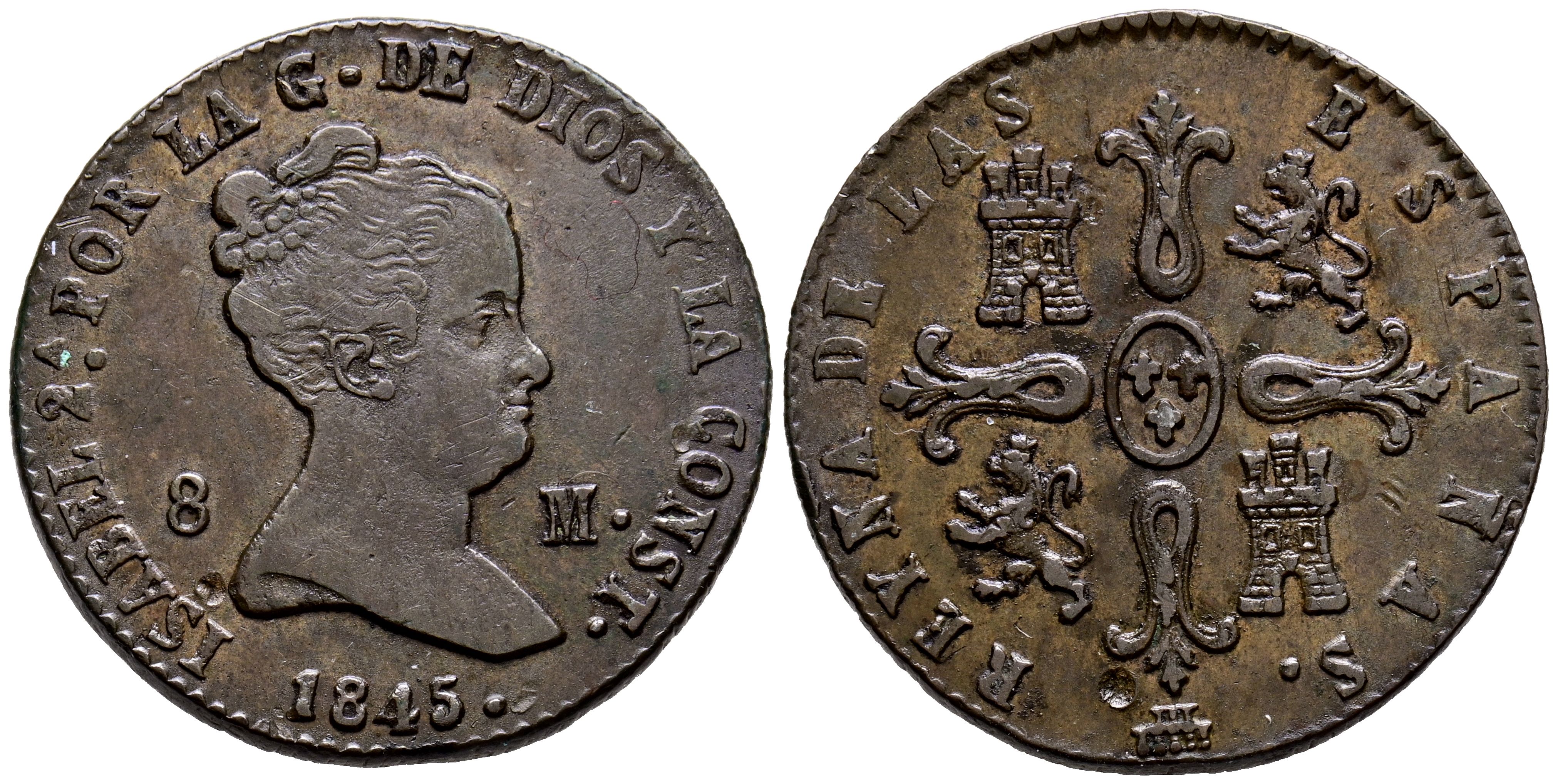 ISABEL II (1833-1868). 8 Maravedís. (Ae. 10,19g/29mm). 1845. Segovia. (Cal-2019-132). EBC-.