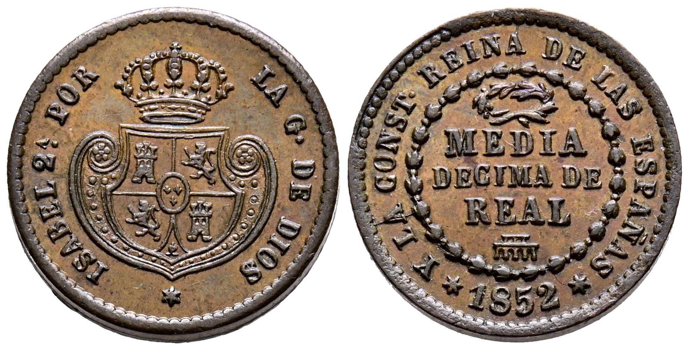 ISABEL II (1833-1868). 1/2 Décima de Real. (Ae. 2,14g/16mm). 1852. Segovia. (Cal-2019-139). EBC+. Bonita pátina.