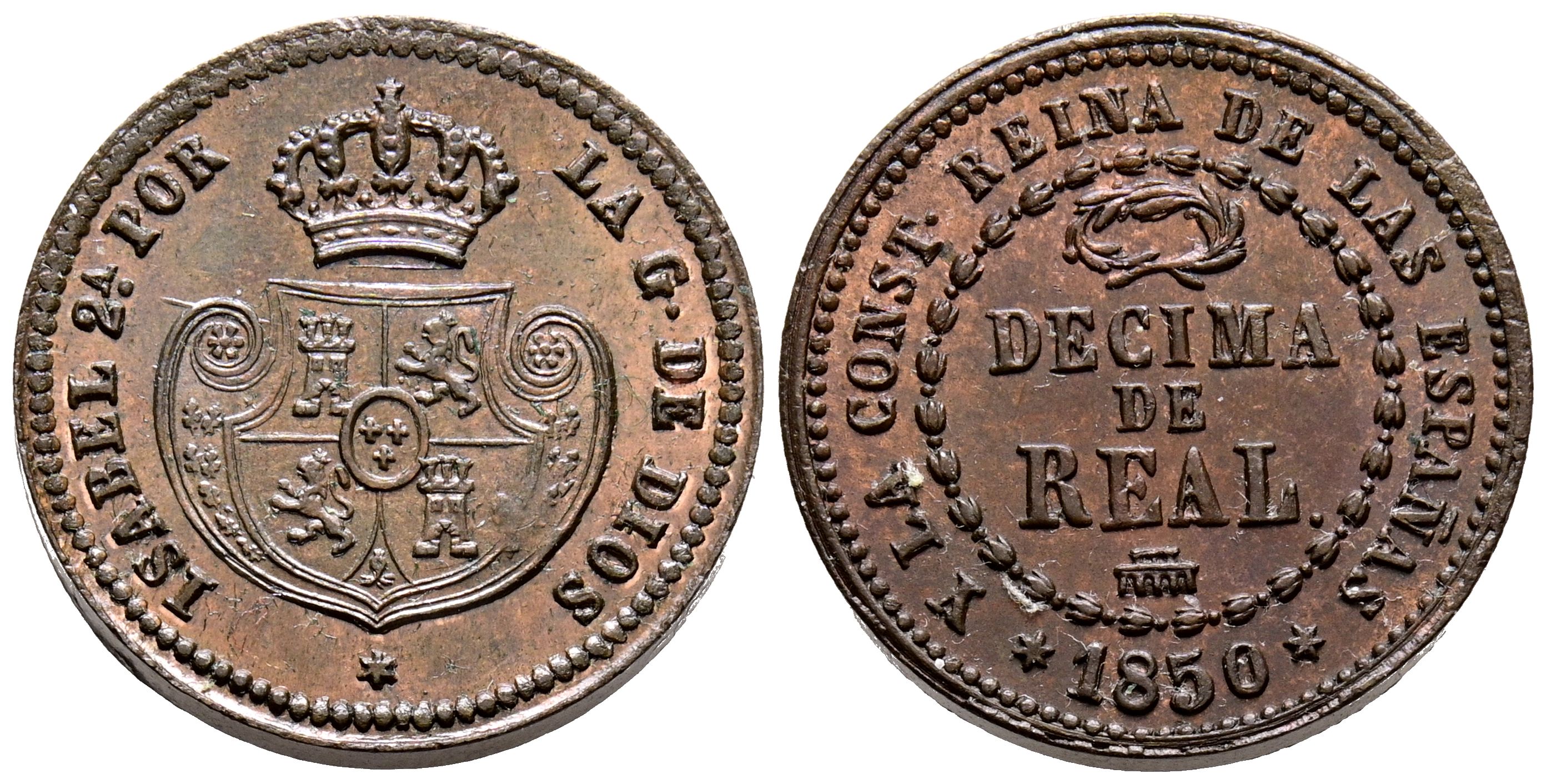 ISABEL II (1833-1868). Décima de Real. (Ae. 3,96g/19mm). 1850. Segovia. (Cal-2019-141). EBC+. Precioso ejemplar, bonita pátina. Raro así.