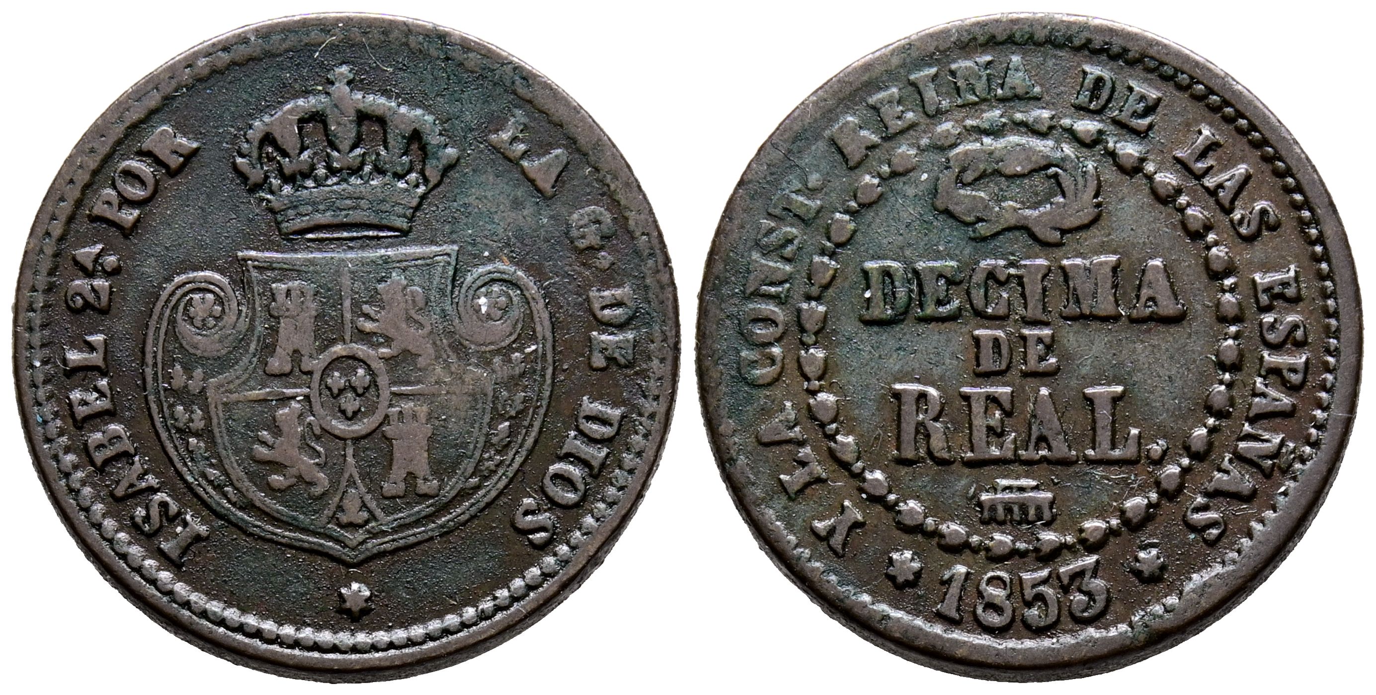 ISABEL II (1833-1868). Décima de Real. (Ae. 3,72g/19mm). 1853. Segovia. (Cal-2019-146). MBC.