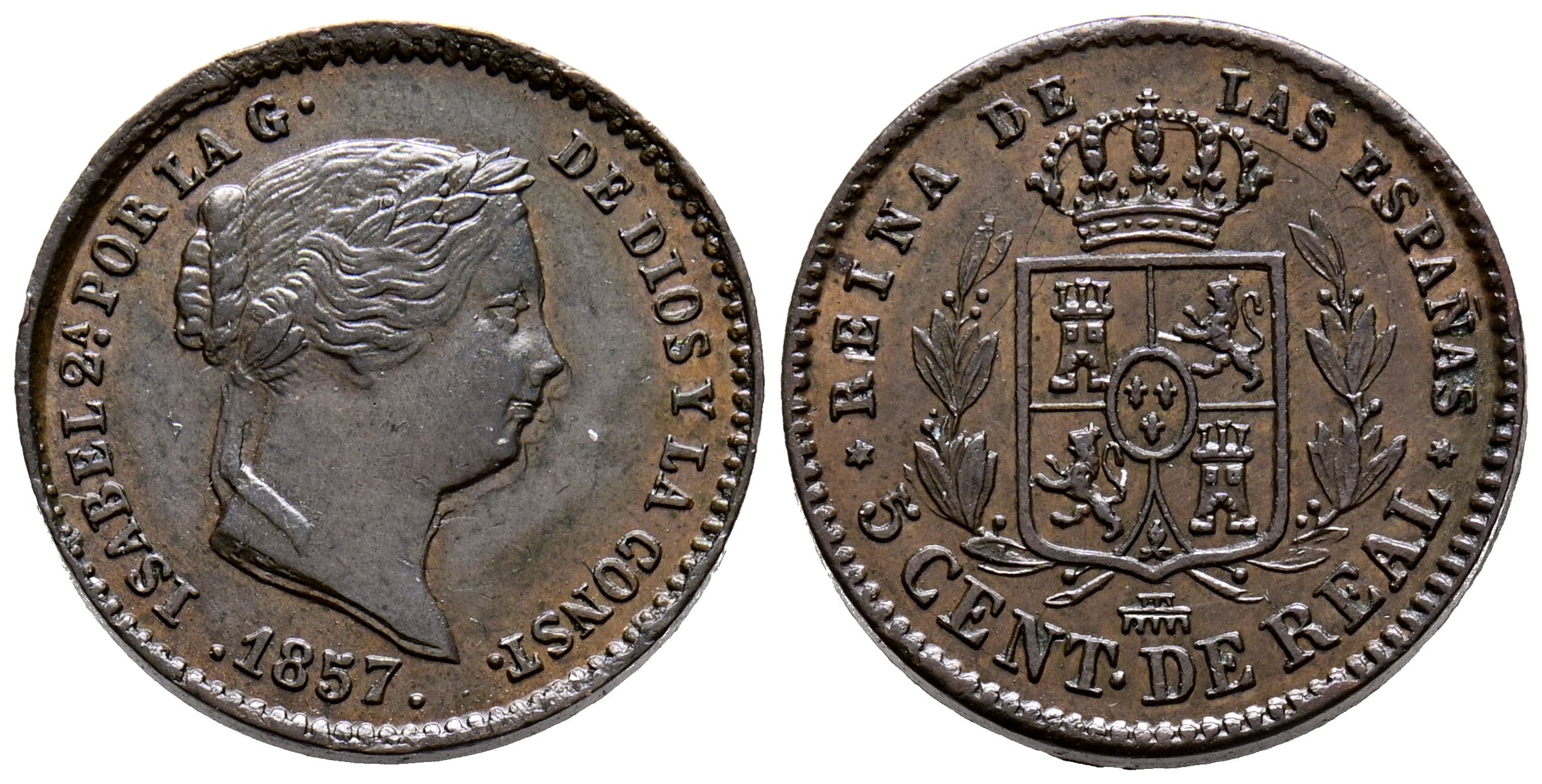 ISABEL II (1833-1868). 5 Céntimos de Real. (Ae. 2,11g/17mm). 1857. Segovia. (Cal-2019-162). EBC+.