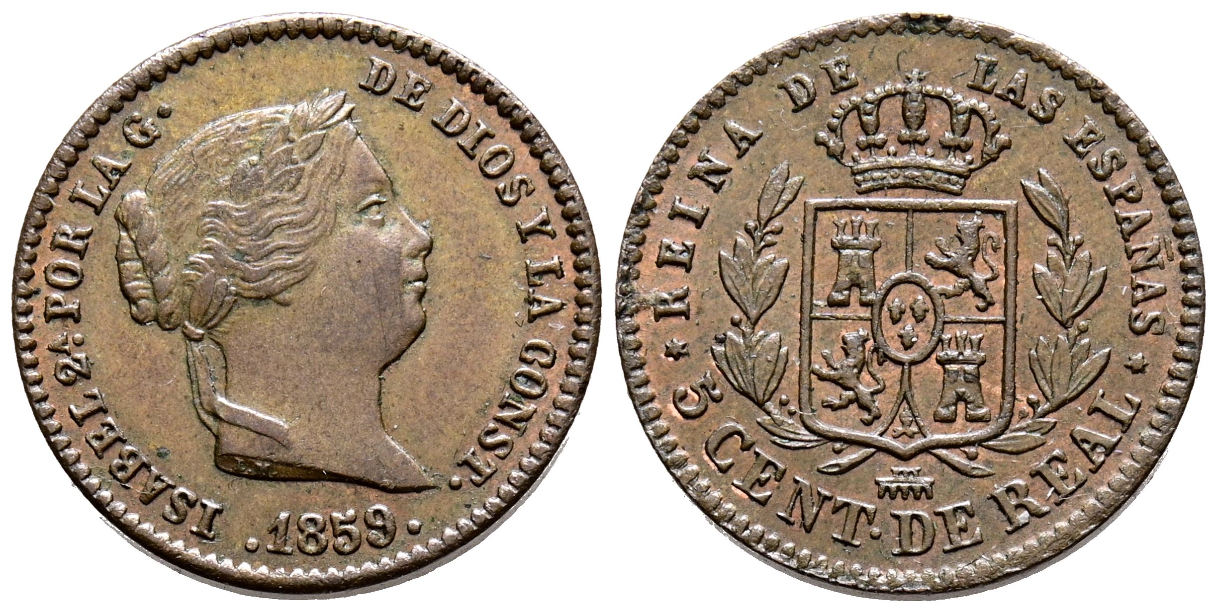 ISABEL II (1833-1868). 5 Céntimos de Real. (Ae. 1,74g/17mm). 1860. Segovia. (Cal-2019-165). EBC-.