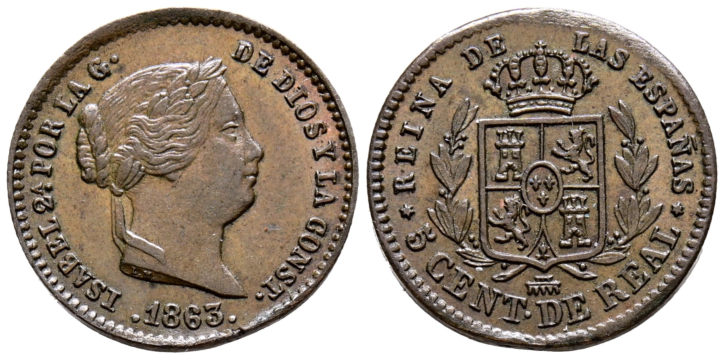 ISABEL II (1833-1868). 5 Céntimos de Real. (Ae. 1,75g/17mm). 1863. Segovia. (Cal-2019-168). MBC+.