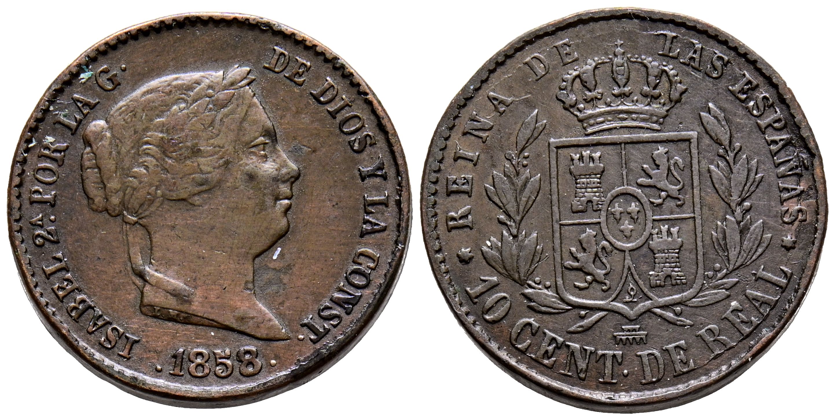 ISABEL II (1833-1868). 10 Céntimos de Real. (Ae. 3,77g/20mm). 1858. Segovia. (Cal-2019-174). MBC.