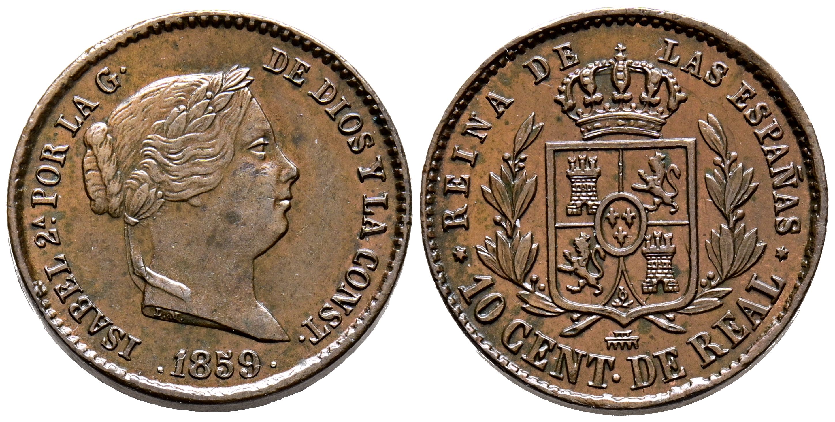 ISABEL II (1833-1868). 10 Céntimos de Real. (Ae. 3,78g/20mm). 1859. Segovia. (Cal-2019-175). MBC+.