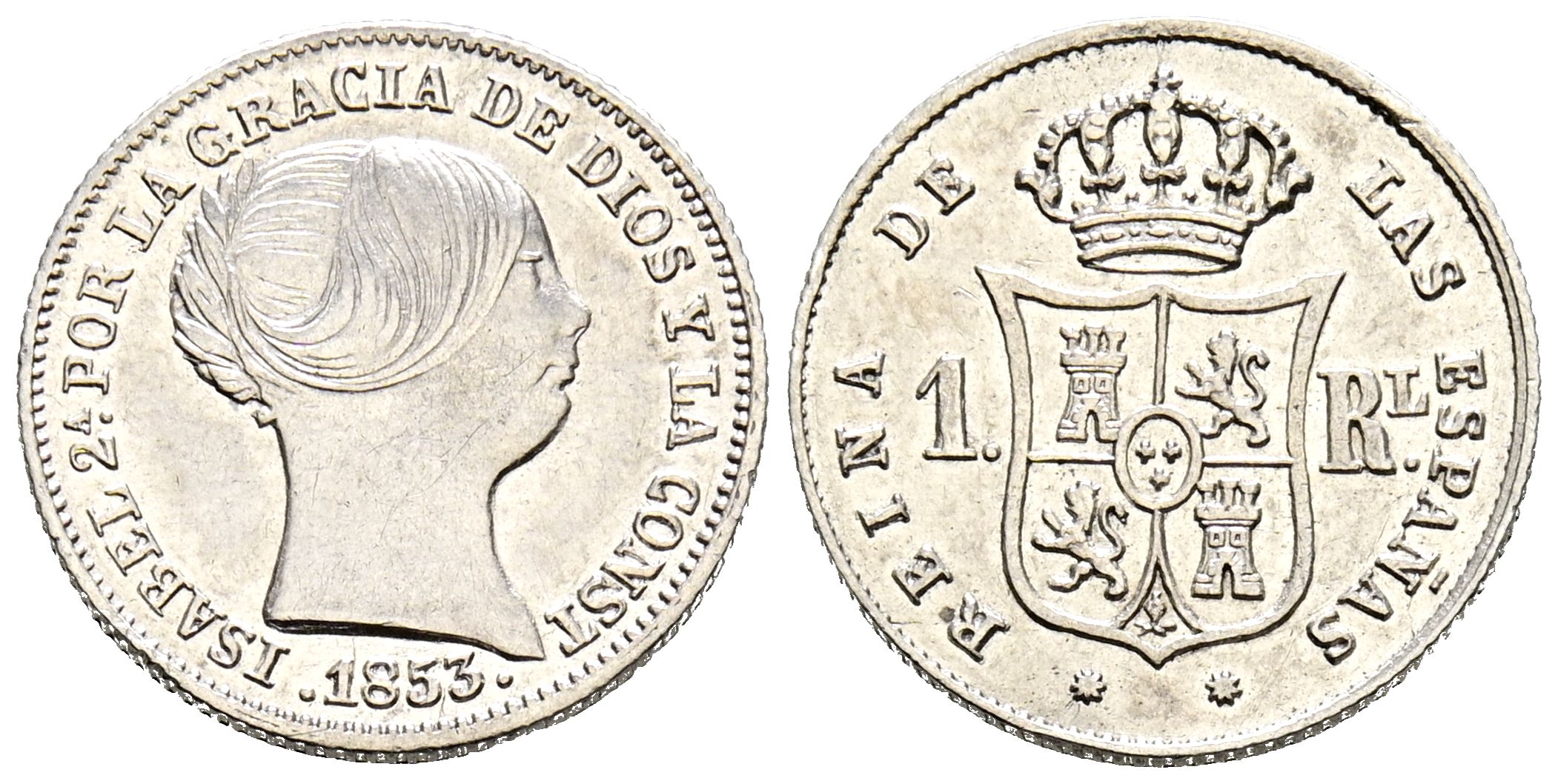 ISABEL II (1833-1868). 1 Real. (Ar. 1,25g/15mm). 1853. Barcelona. (Cal-2019-276). EBC. Leves marquitas.