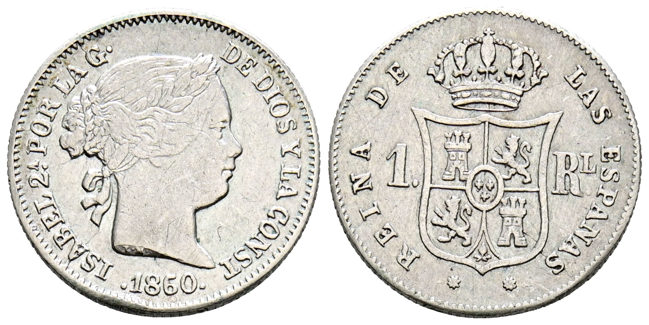 ISABEL II (1833-1868). 1 Real. (Ar. 1,28g/15mm). 1860. Barcelona. (Cal-2019-285). MBC.
