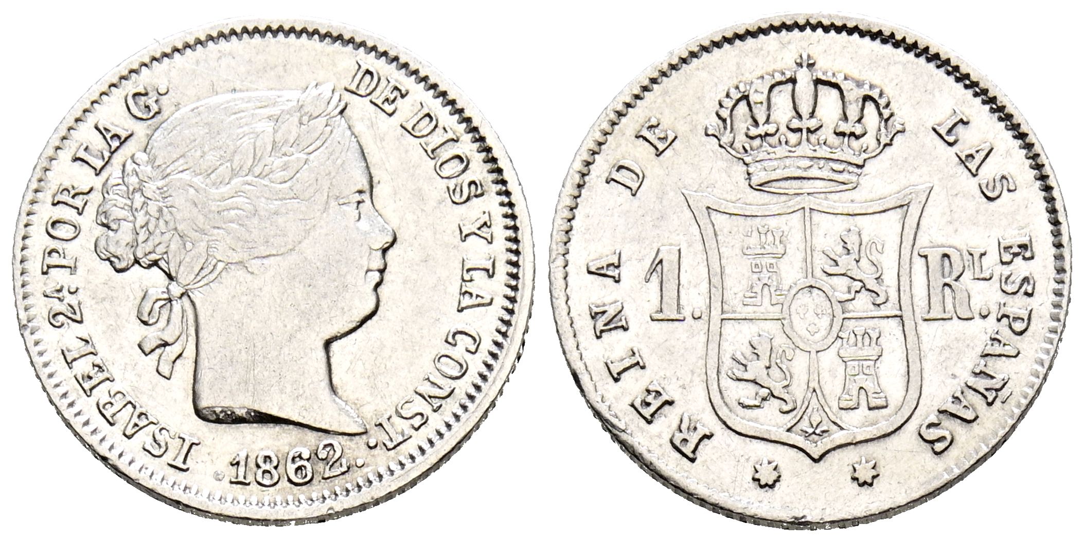 ISABEL II (1833-1868). 1 Reales. (Ar. 1,26g/15mm). 1862. Sevilla. (Cal-2019-333). MBC+.