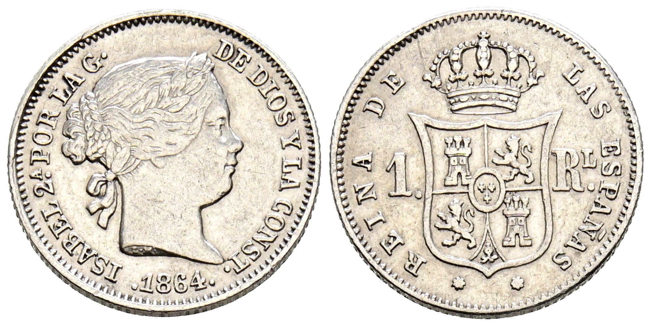 ISABEL II (1833-1868). 1 Real. (Ar. 1,29g/15mm). 1864. Sevilla. (Cal-2019-337). MBC+.
