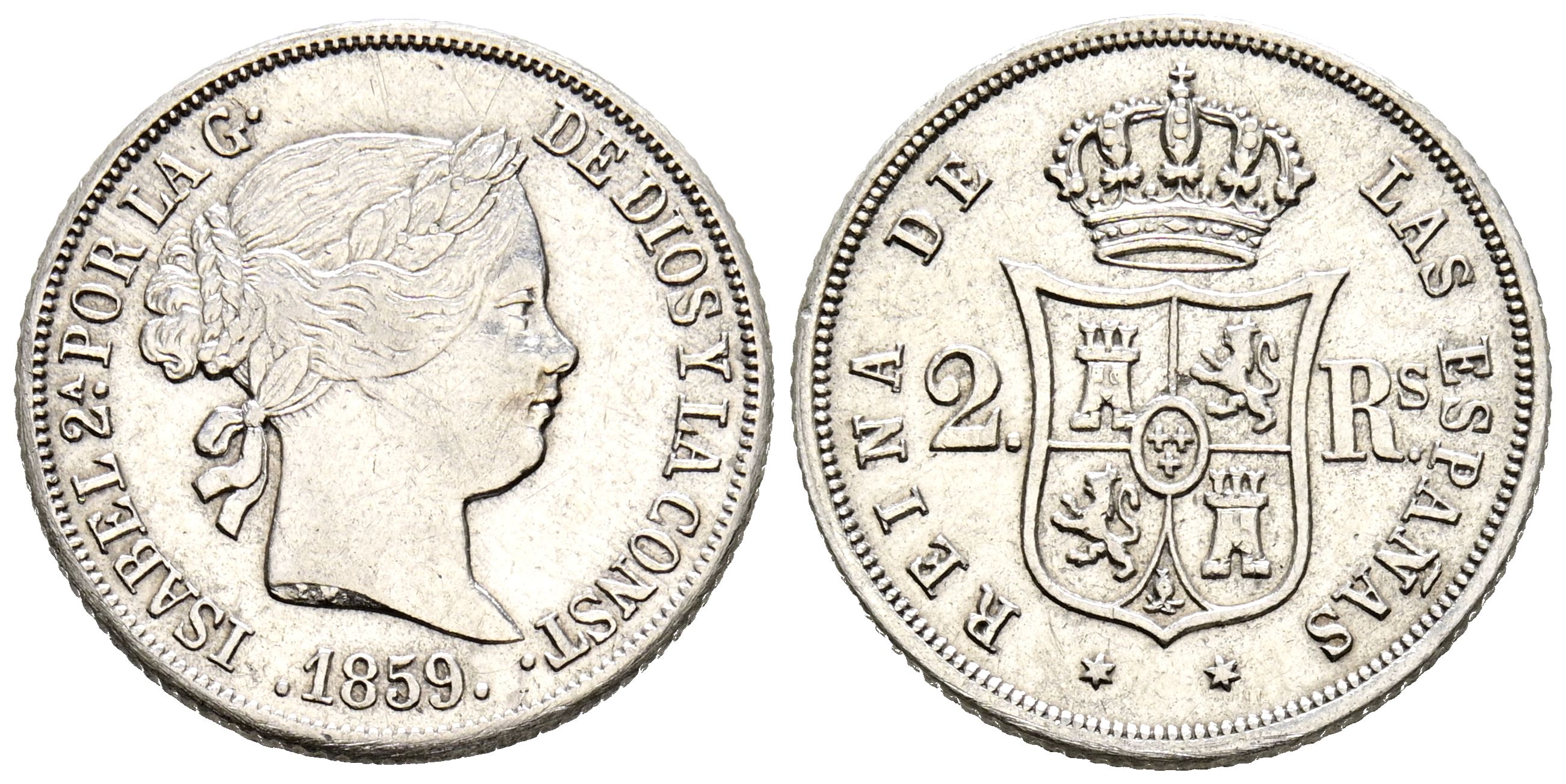 ISABEL II (1833-1868). 2 Reales. (Ar. 2,49g/18mm). 1859. Madrid. (Cal-2019-374). MBC+.