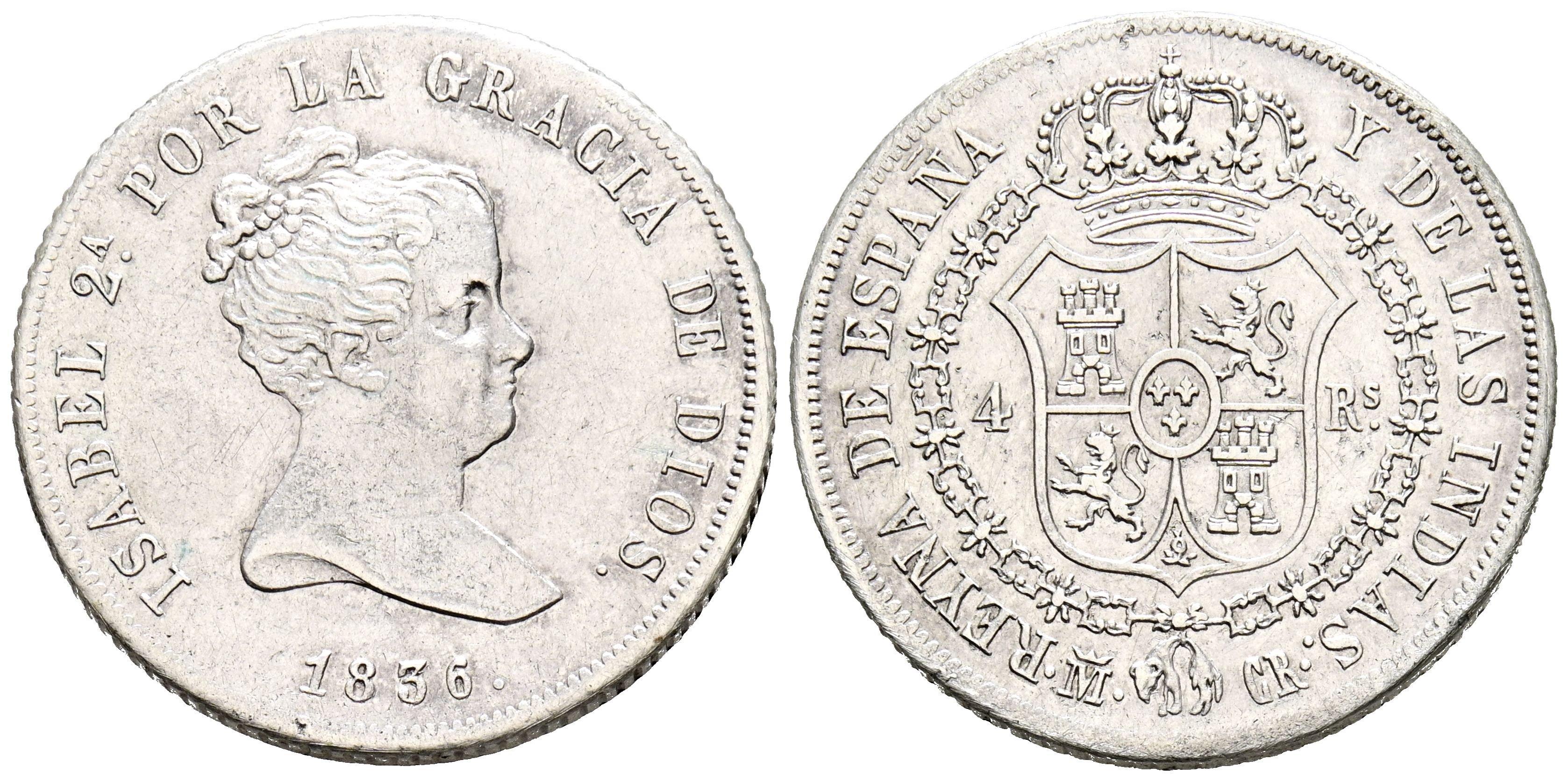 ISABEL II (1833-1868). 4 Reales. (Ar. 5,93g/23mm). 1836. Madrid CR. (Cal-2019-443). "DIOS" en la leyenda del anverso. EBC. Escasa.