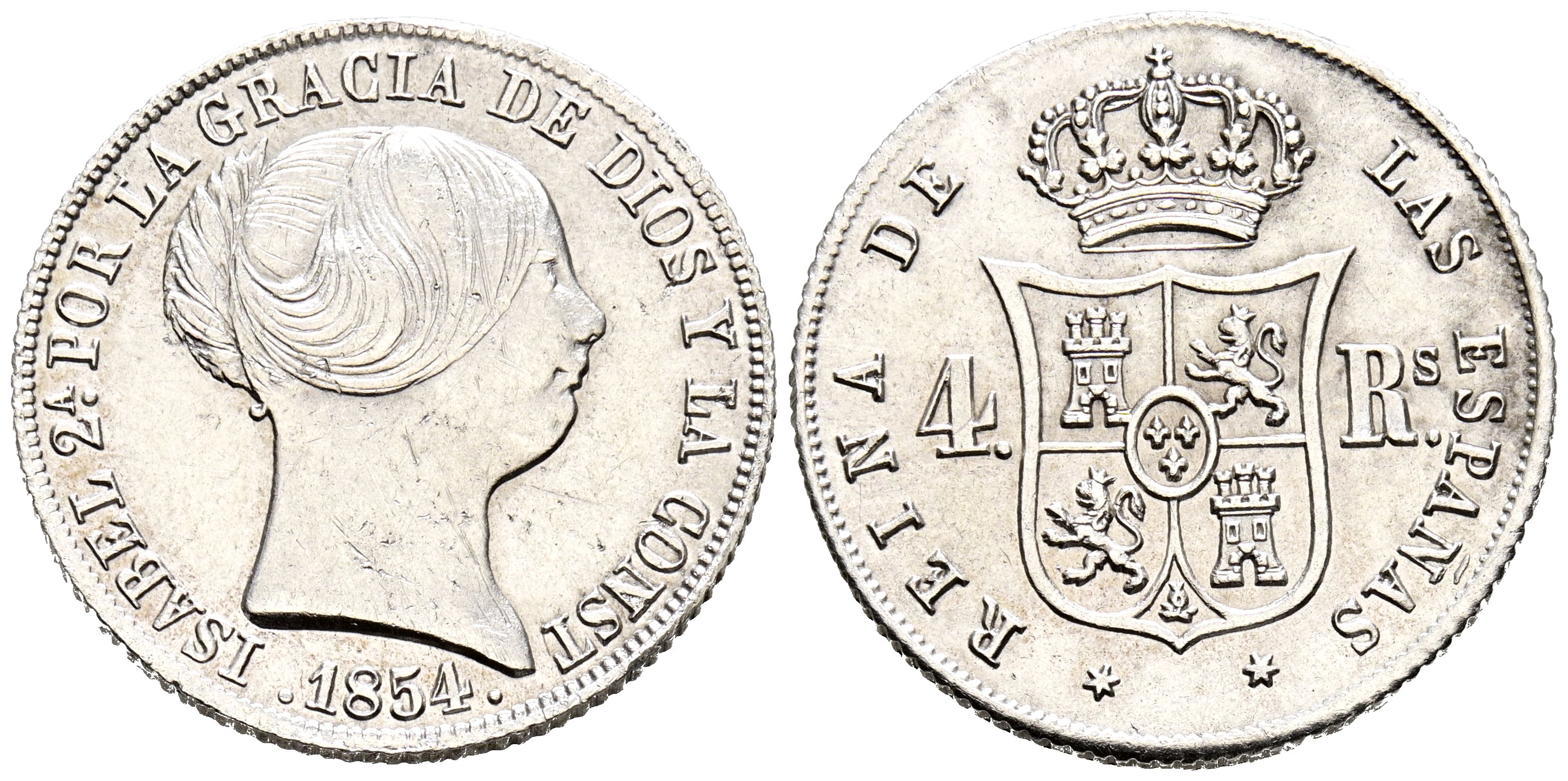 ISABEL II (1833-1868). 4 Reales. (Ar. 5,19g/23mm). 1854. Madrid. (Cal-2019-459). EBC-. Rayitas. Escasa así.
