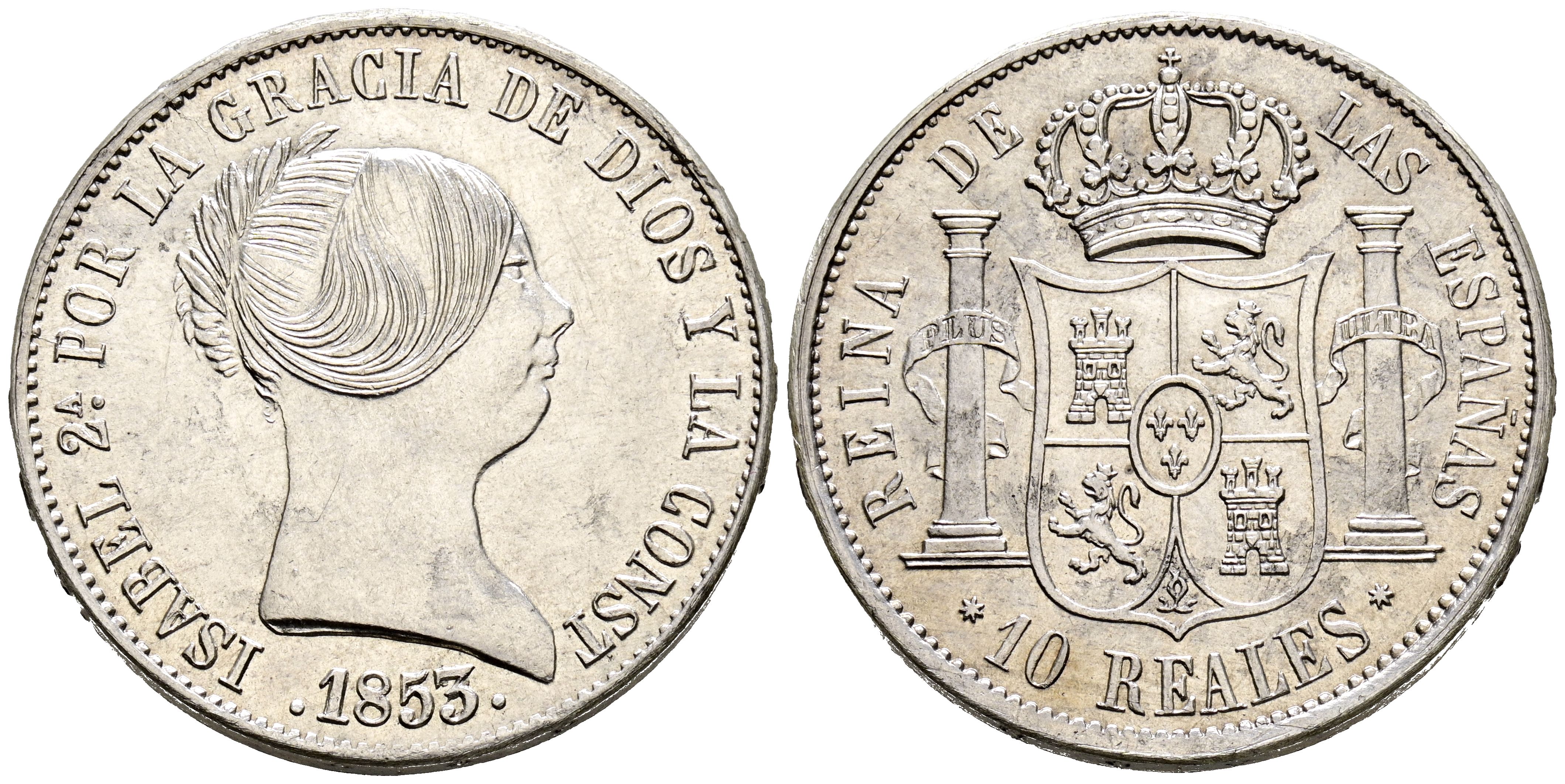 ISABEL II (1833-1868). 10 Reales. (Ar. 12,88g/29mm). 1853/2. Sevilla. (Cal-2019-549). EBC+. Brillo original. Excepcional y escasa pieza con sobrefecha.
