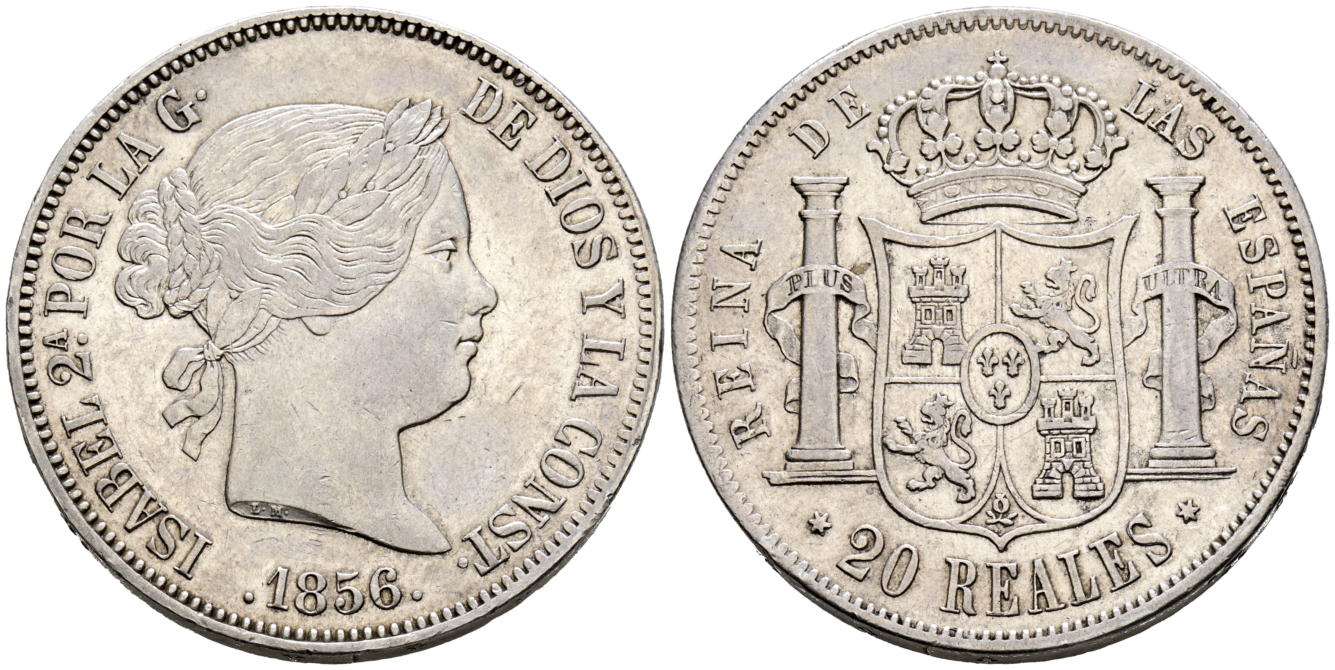 ISABEL II (1833-18368). 20 Reales. (Ar. 25,98g/37mm). 1856. Madrid. (Cal-2019-612). MBC+.