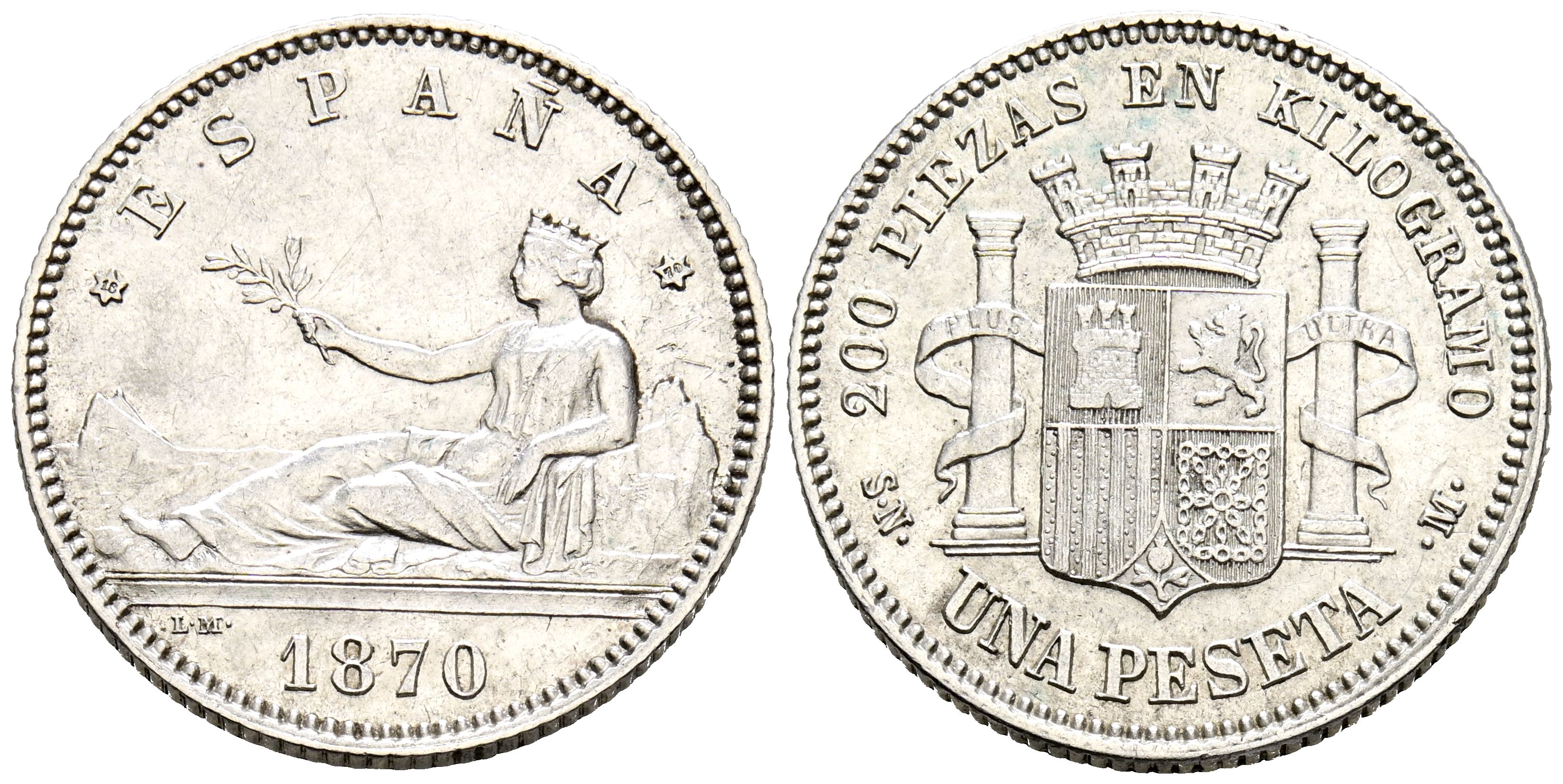 GOBIERNO PROVISIONAL (1868-1871). 1 Peseta. (Ar. 4,95g/23mm). 1870 *18-70. Madrid SNM. (Cal-2019-18). EBC-.