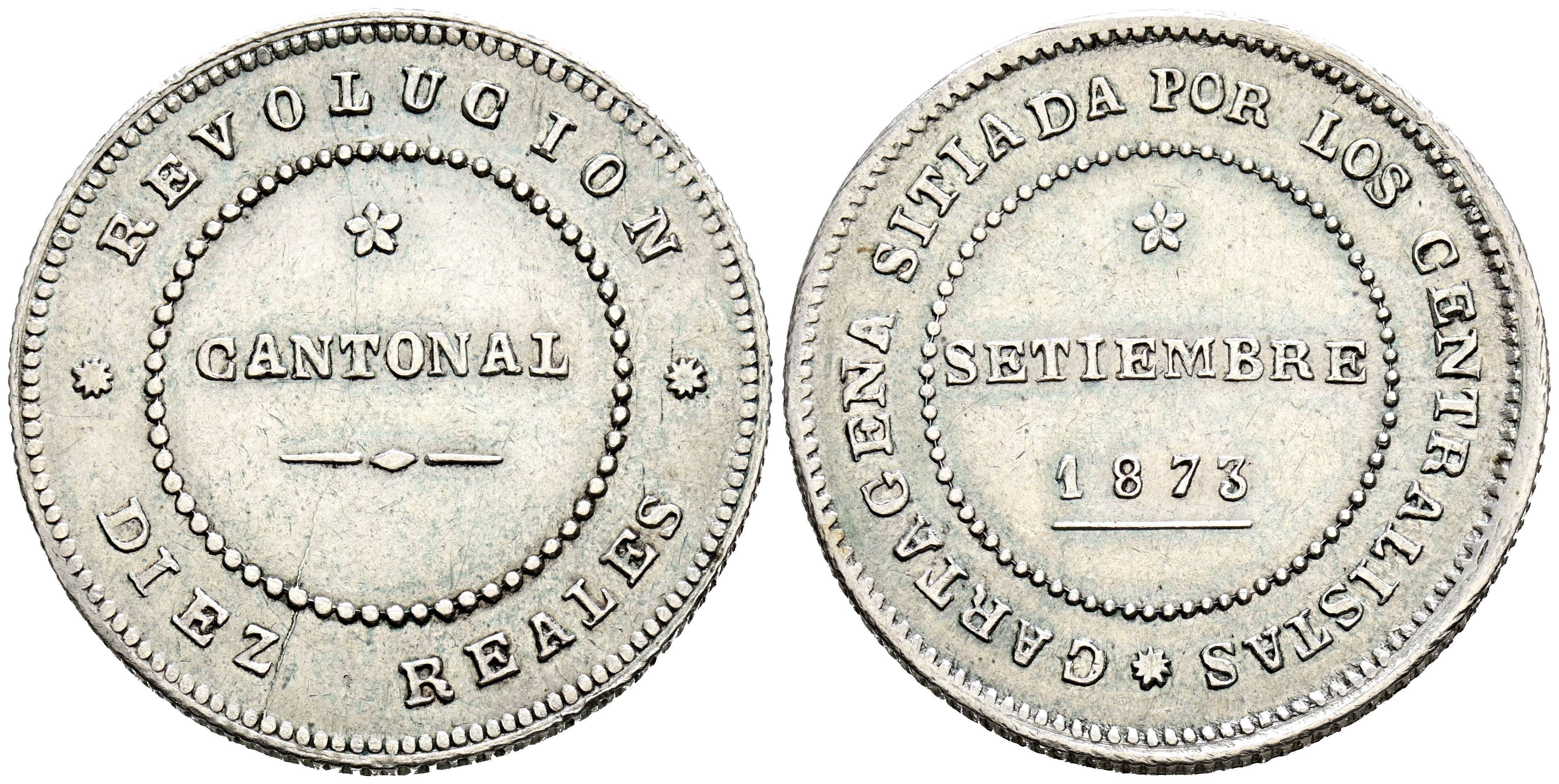 REVOLUCIÓN CANTONAL (1873-1874). 10 Reales. (Ar. 13,96g/30mm). 1873. Cartagena. (Cal-2019-4). EBC-. Escaso y más así.