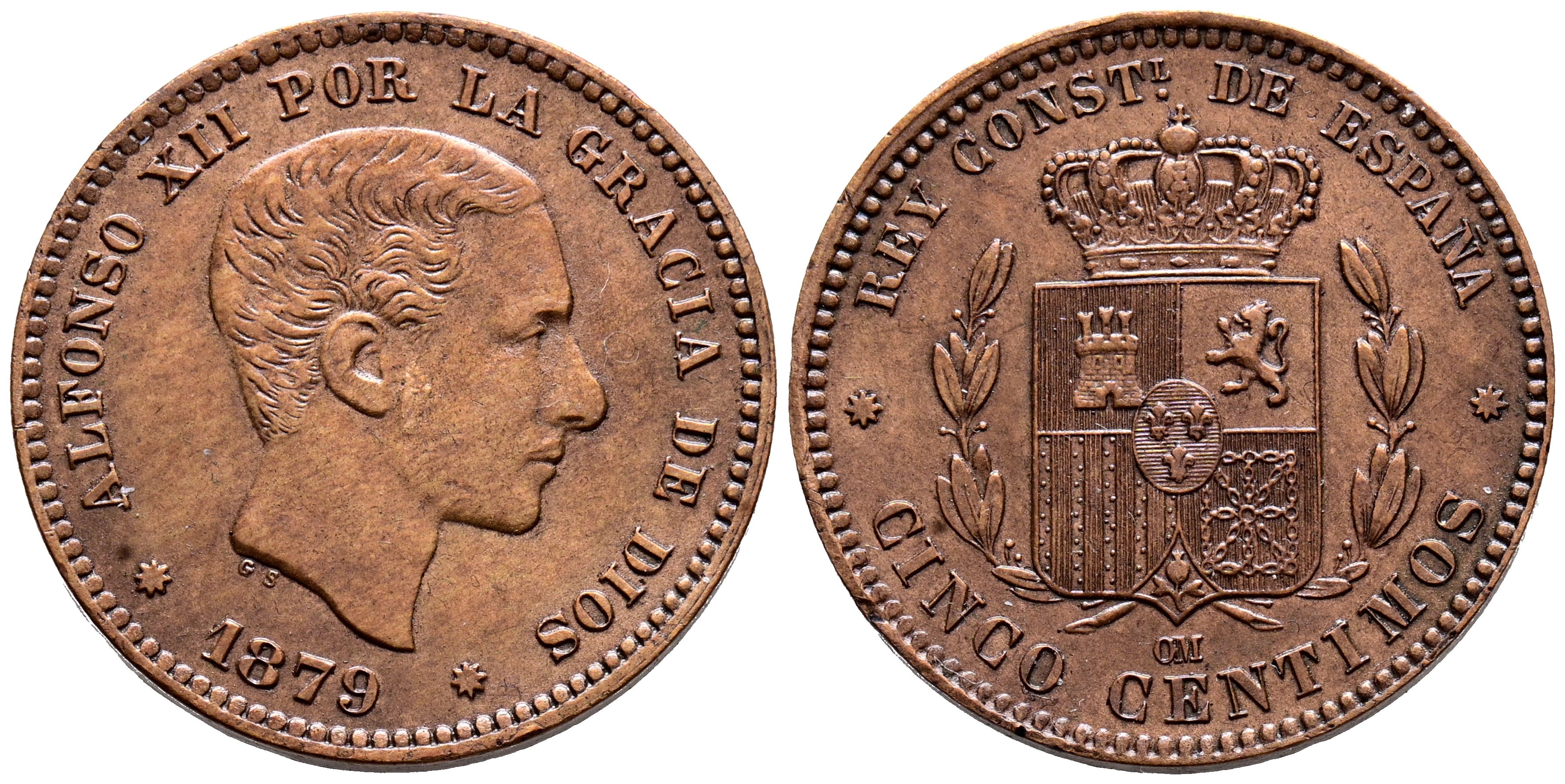 ALFONSO XII (1874-1885). 5 Céntimos. (Ae. 4,96g/24mm). 1879. Barcelona OM. (Cal-2019-6). MBC+.