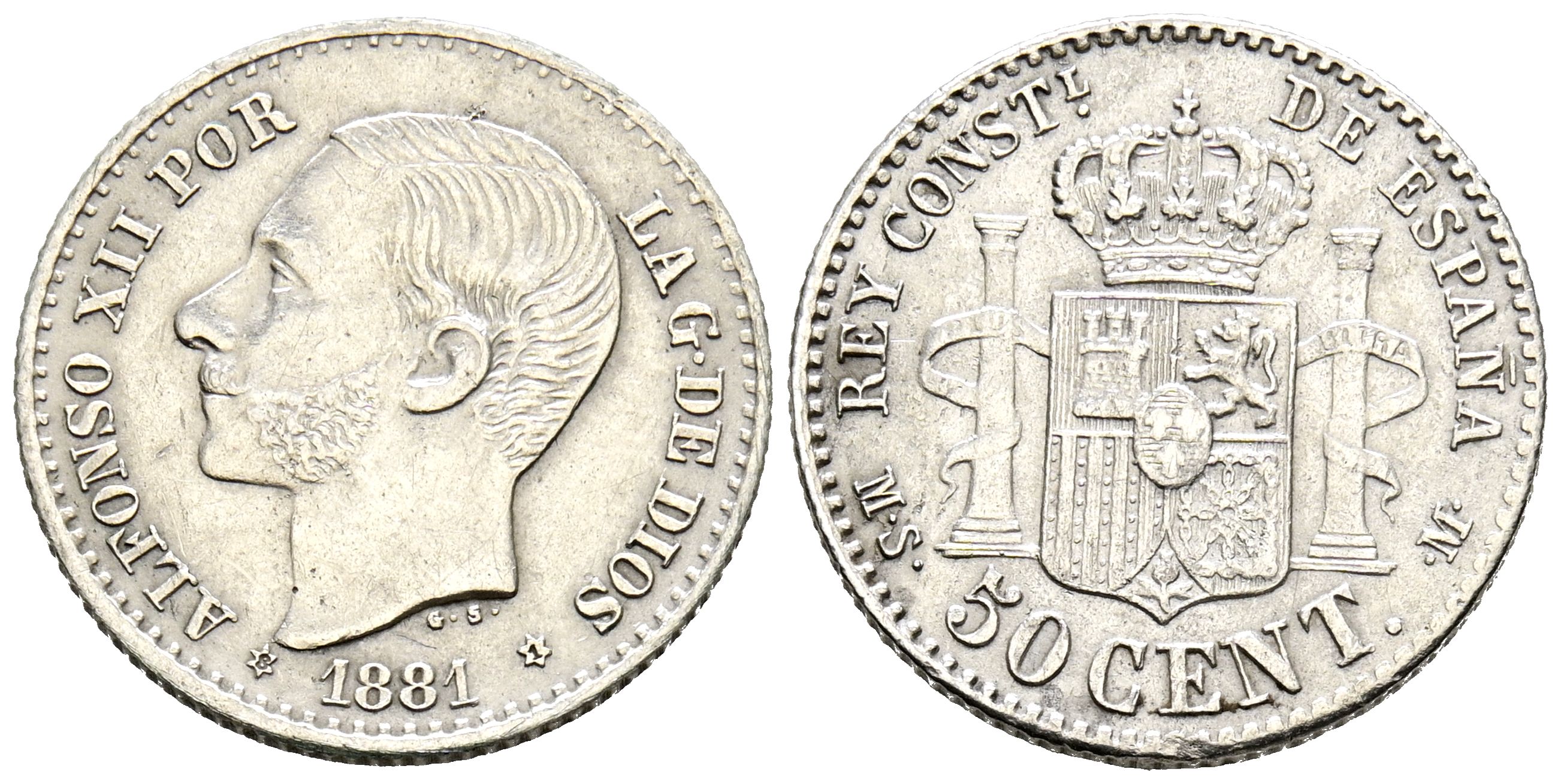 ALFONSO XII (1874-1885). 50 Céntimos. (Ar. 2,52g/18mm). 1881 *8-1. Madrid MSM. (Cal-2019-12). MBC+.