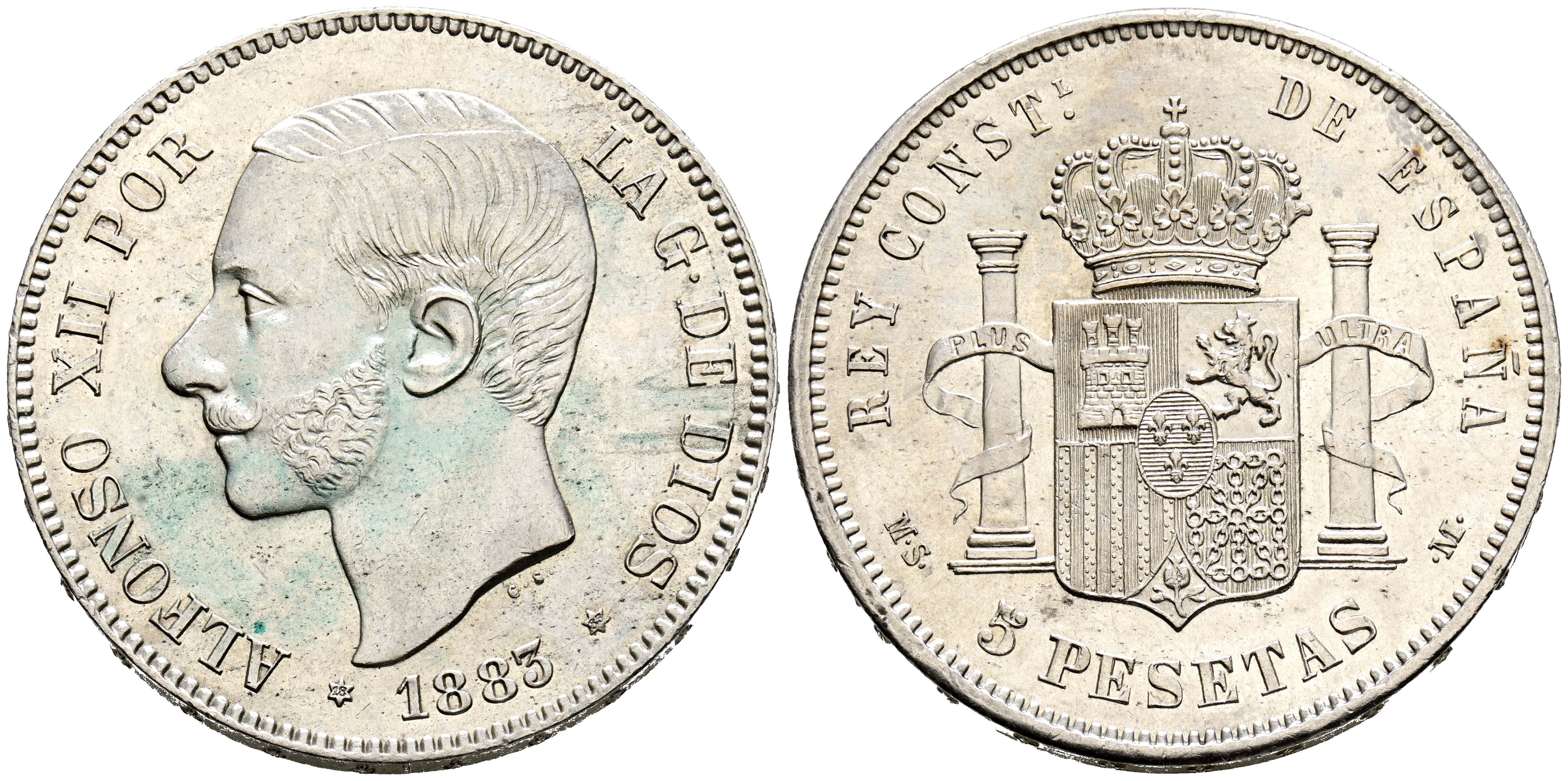 ALFONSO XII (1874-1885). 5 Pesetas. (Ar. 24,86g/37mm). 1883 *18-83. Madrid MSM. (Cal-2019-55). EBC-/EBC.