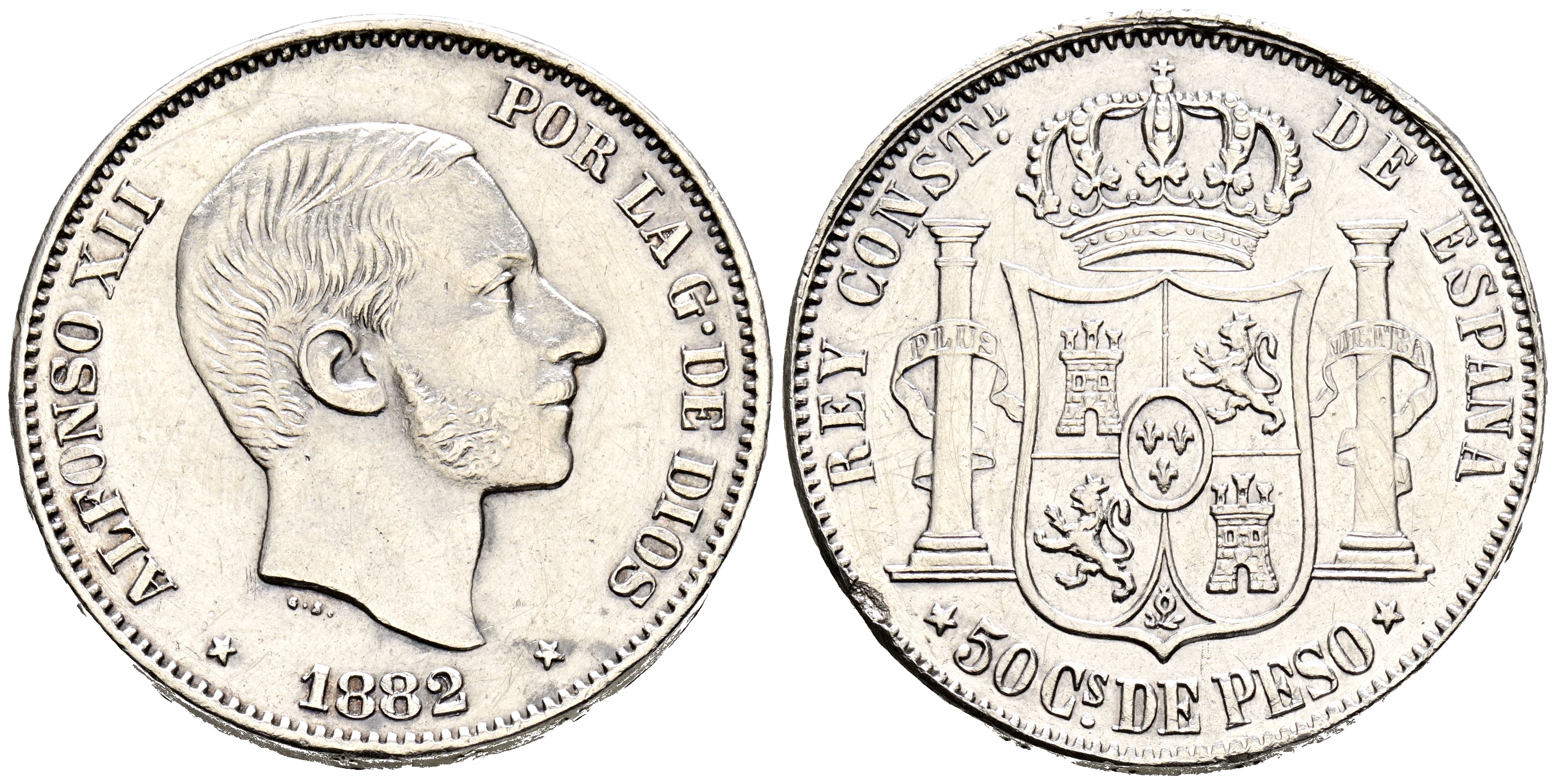 ALFONSO XII (1874-1885). 50 Centavos. (Ar. 12,56g/30mm). 1882. Manila. (Cal-2019-118). MBC+.