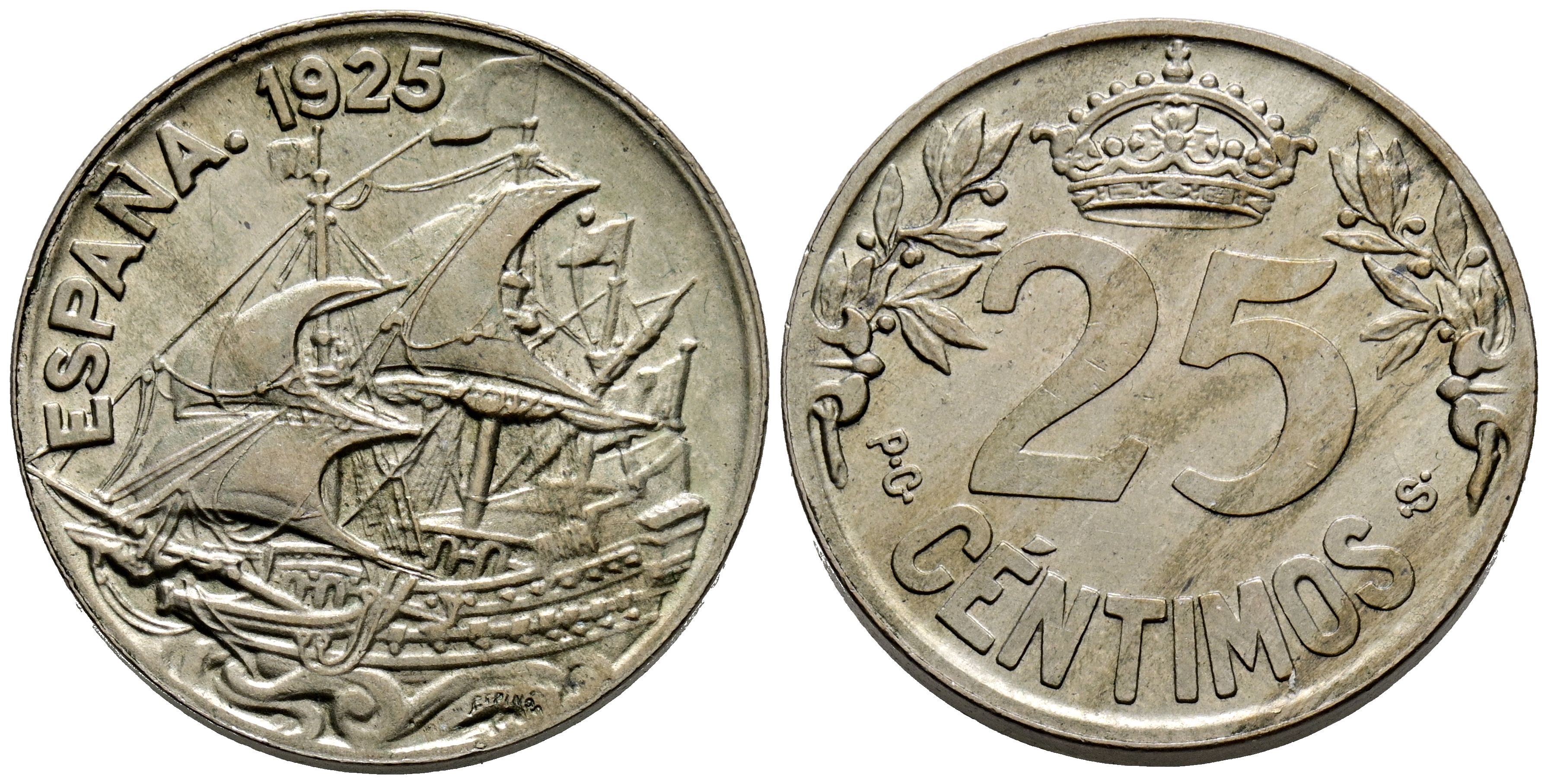 ALFONSO XIII (1885-1931). 25 Céntimos. (CuNi. 7,00g/25mm). 1925. Madrid PCS. (Cal-2019-24). SC. Bonita pátina.