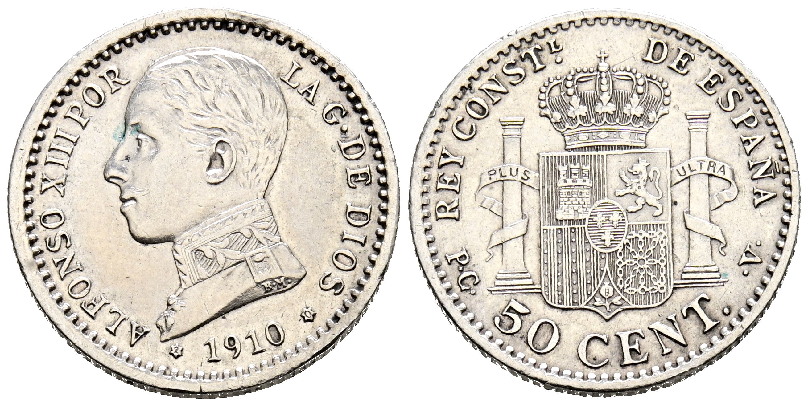 ALFONSO XIII (1885-1931). 50 Céntimos. (Ar. 2,50g/18mm). 1910 *1-0. Madrid PCV. (Cal-2019-48). EBC-.