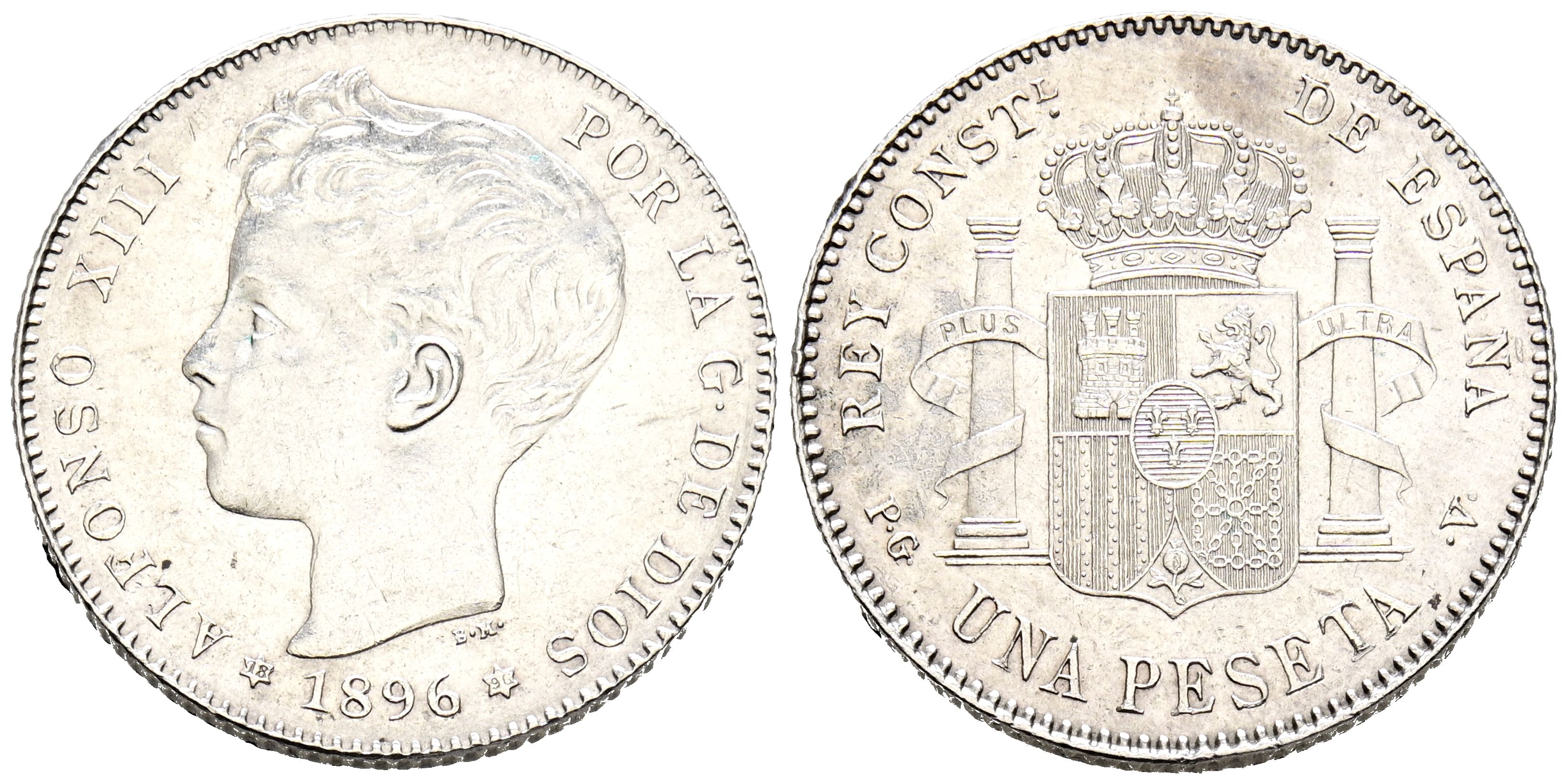 ALFONSO XIII (1885-1931). 1 Peseta. (Ar. 4,98g/23mm). 1896 *18-96. Madrid PGV. (Cal-2019-56). EBC. Leves rayitas.