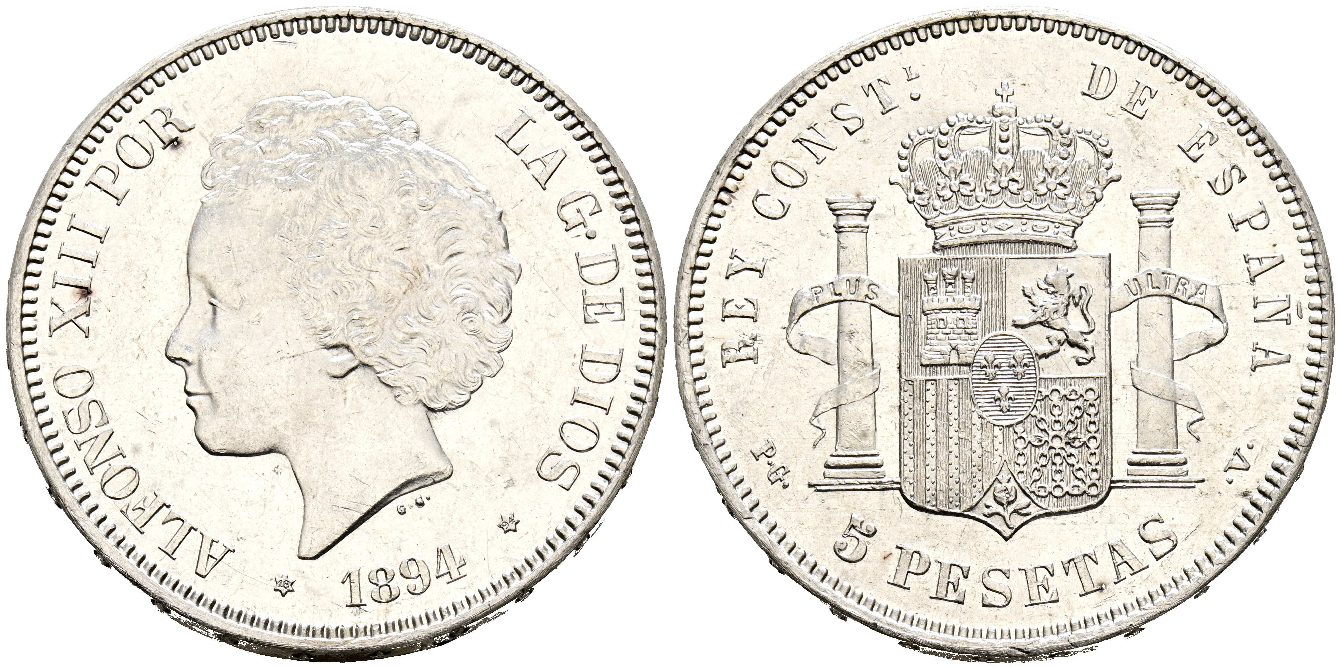 ALFONSO XIII (1885-1931). 5 Pesetas. (Ar. 25,02g/37mm). 1894 *18-94. Madrid PGV. (Cal-2019-104). EBC.