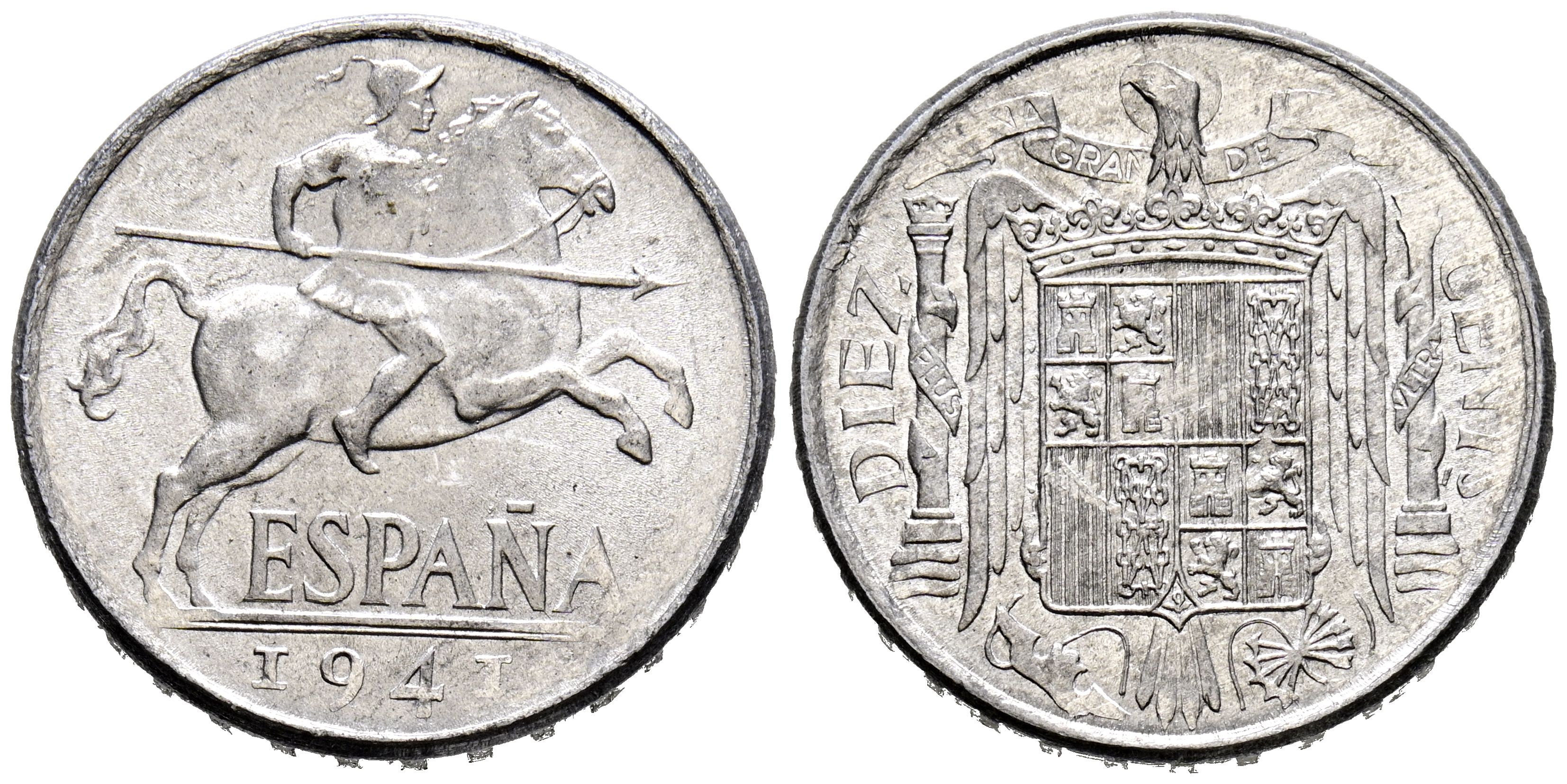 ESTADO ESPAÑOL. 10 Céntimos. (Al. 1,84g/23mm). 1941. Madrid. (Cal-2019-8). Leyenda: PLUS. SC.