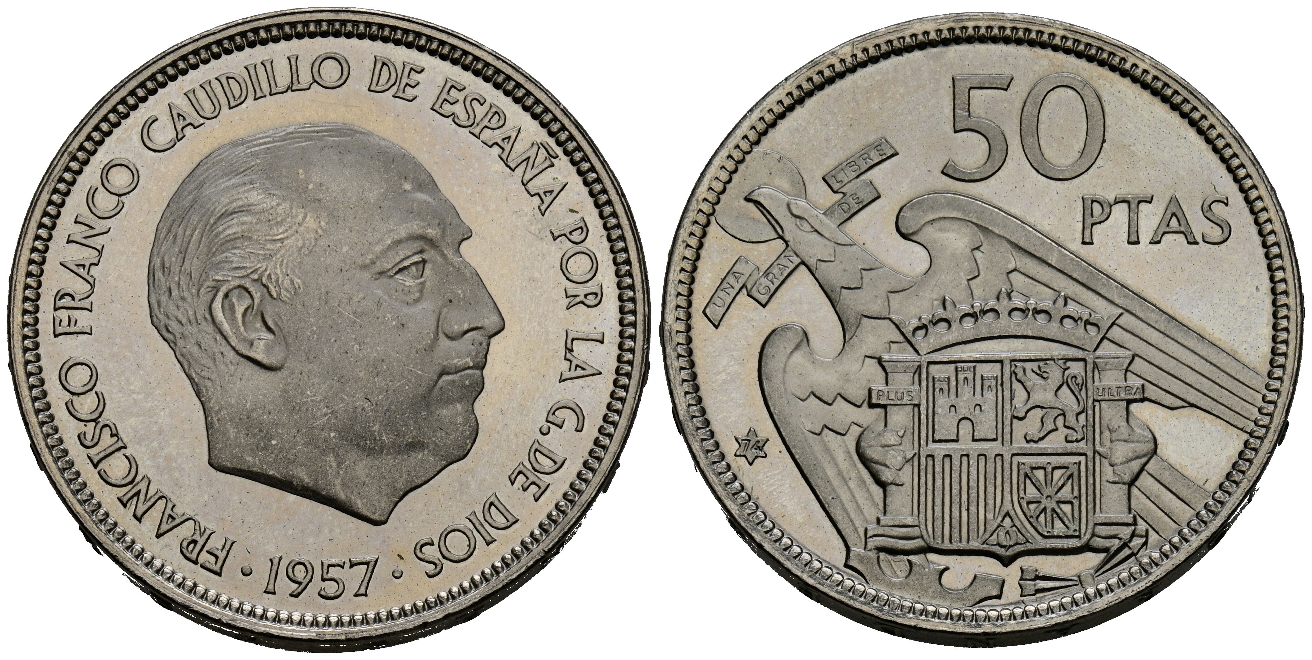 ESTADO ESPAÑOL (1936-1975). 50 Pesetas. (Ni. 12,35g/30mm). 1957 *74. Madrid. (Cal-2019-143). PROOF.