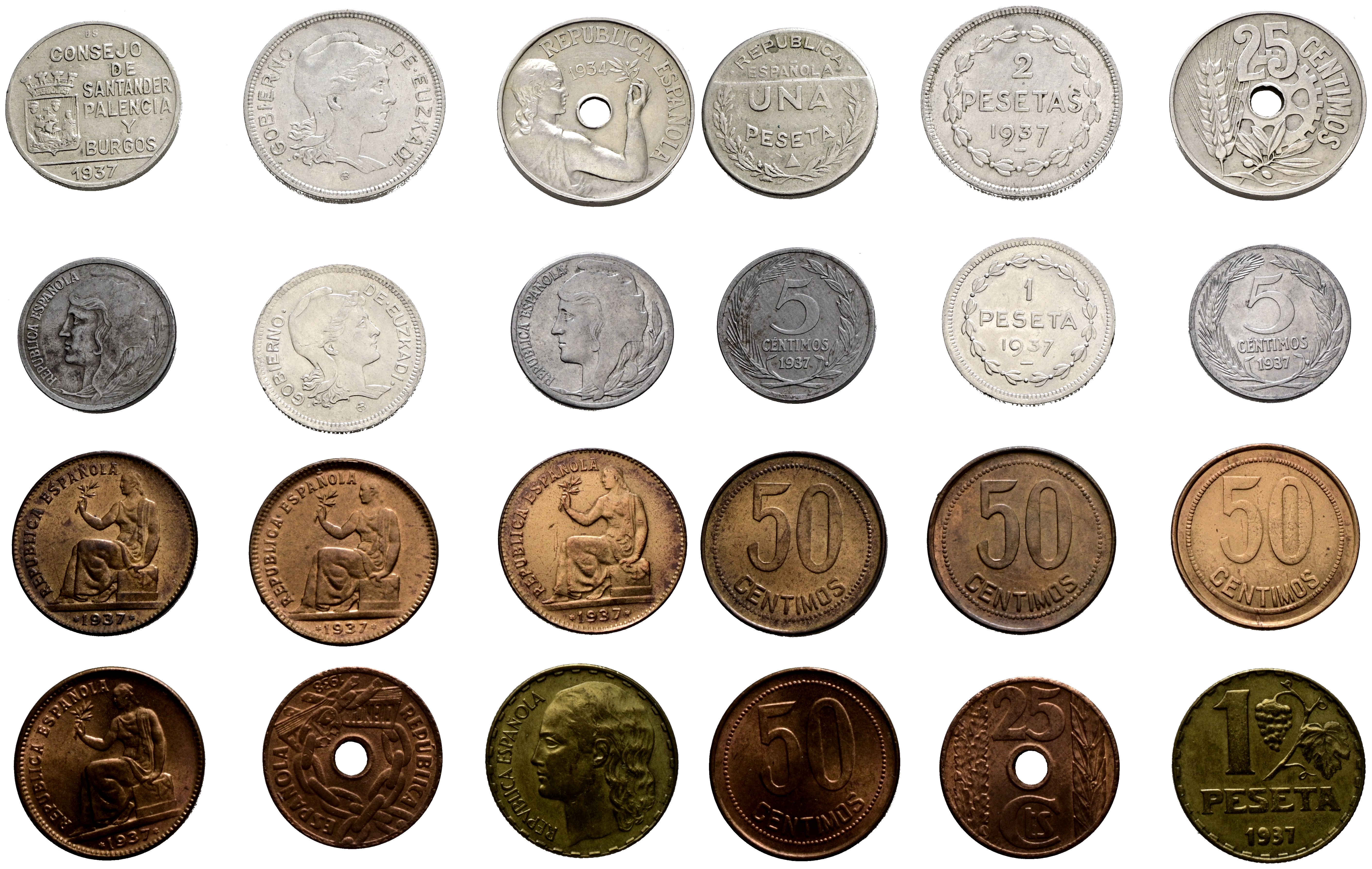 II REPUBLICA Y GUERRA CIVIL. Interesante conjunto de 12 piezas de ambos periodos con variedad de módulos y sin ejemplares repetidos. Destacan los 50 céntimos republicanos con variantes de orlas y dígitos en las estrellas. Muy buena conservación en general. A EXAMINAR.