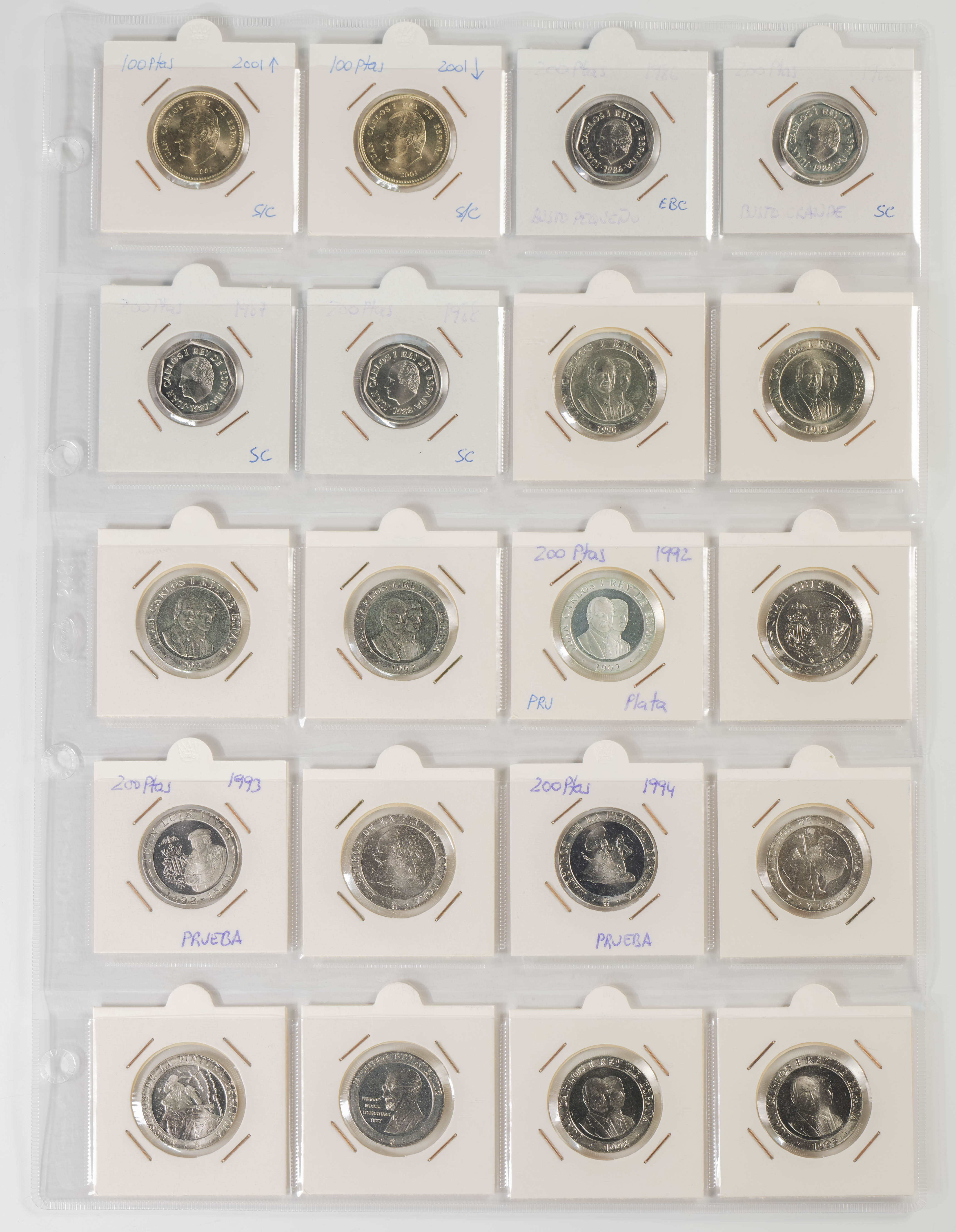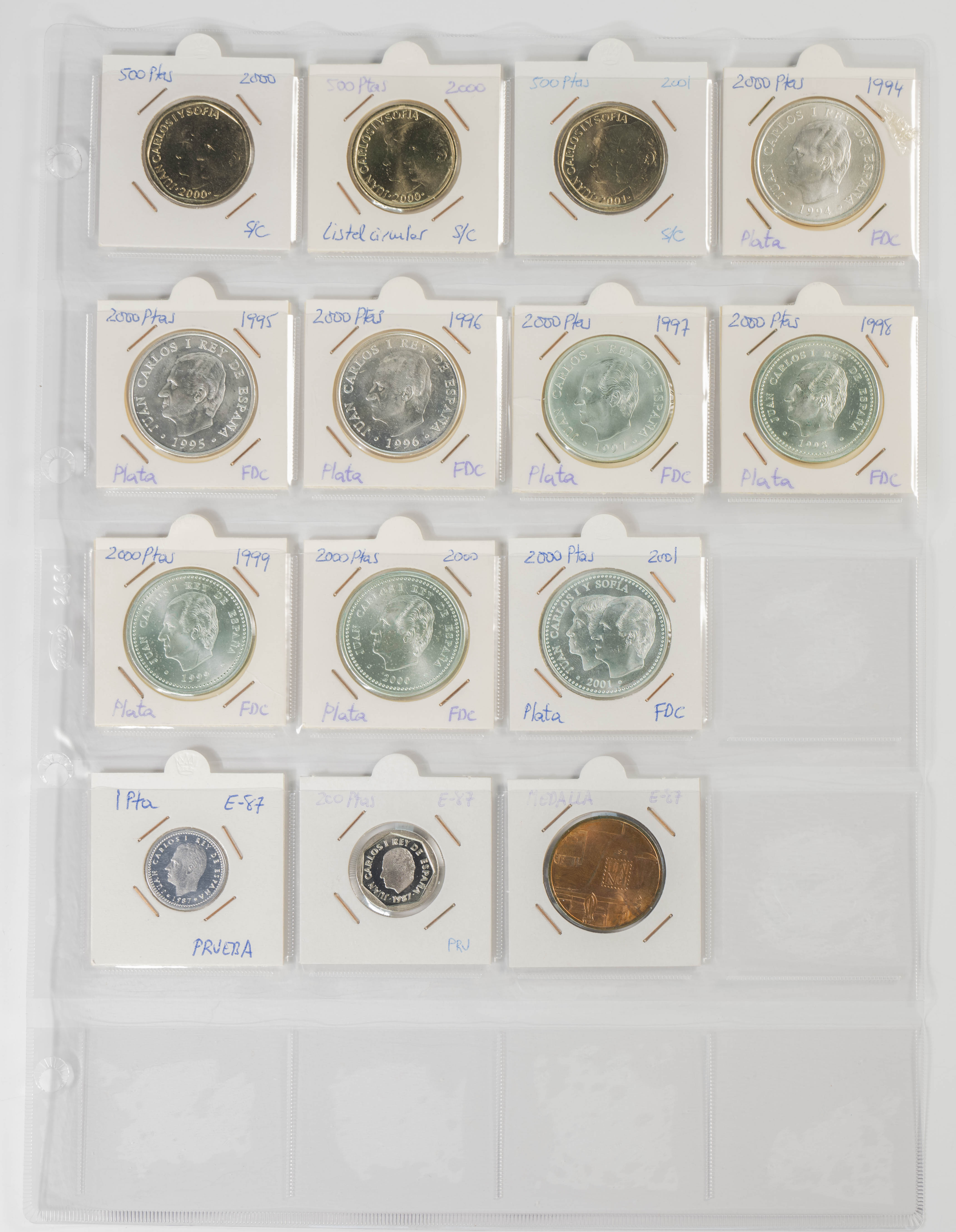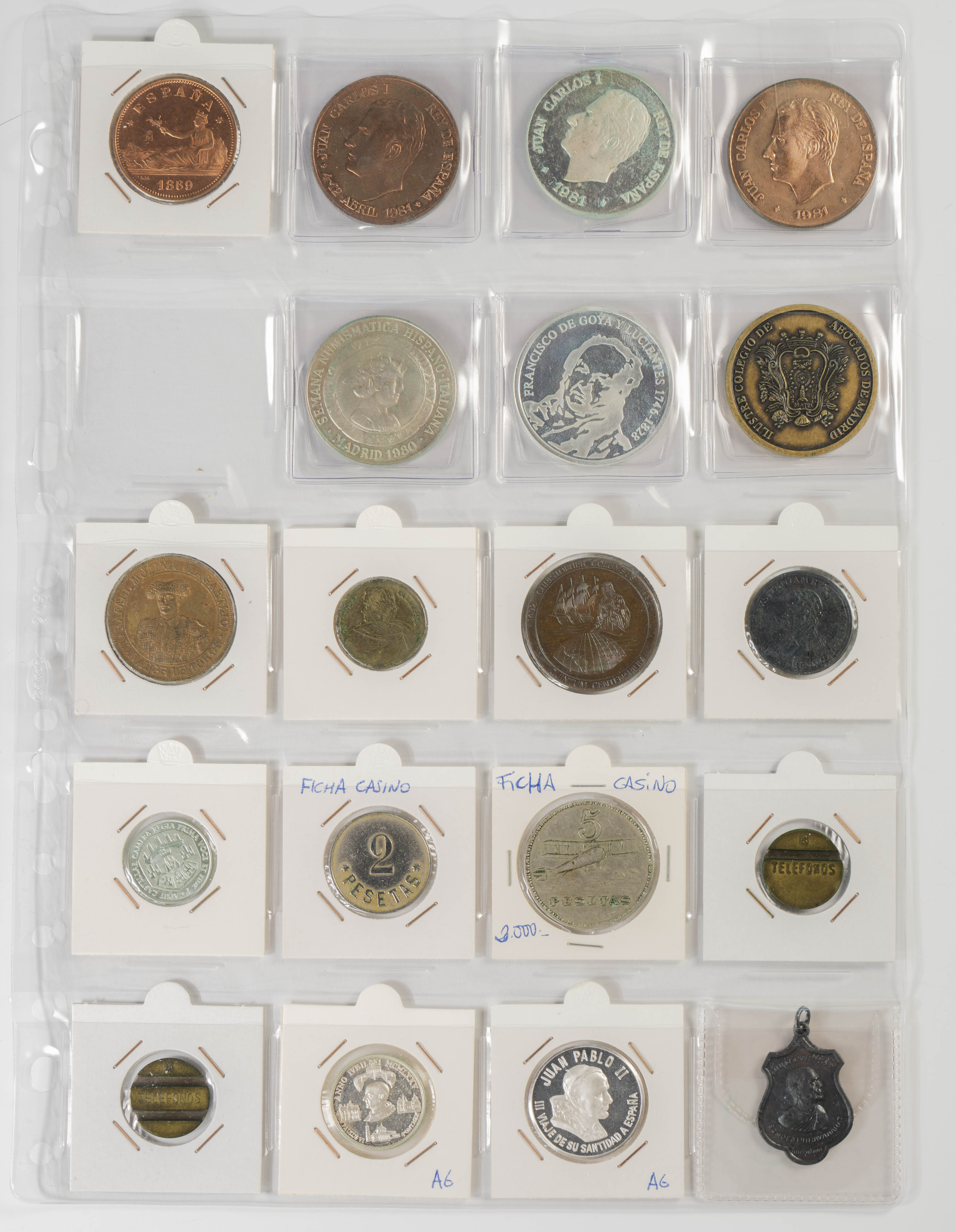 ESTADO ESPAÑOL Y JUAN CARLOS I. Excelente resto de colección formado por centenares de piezas de ambos peridos y expuestas en 2 álbumes. Variedad de módulos, materiales (incluida la plata) y fechas, sin apenas monedas repetidas. El conjunto se completa con algunas medallas, fichas de casinos así como algunas variantes. Muy buen estado de conservación en general, destacando la parte de Juan Carlos I con todas las piezas prácticamente SC. A EXAMINAR.